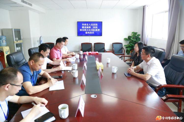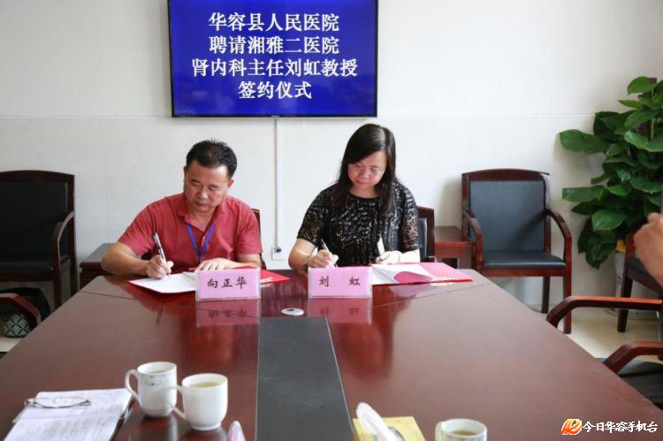 为了更好的服务于华容县的肾病患者,实现“大病不出县”,6月9日,县人民医院邀请到了湘雅二医院副院长柴湘平教授、肾内科及血液净化中心主任刘虹教授莅临医院指导工作。并与刘虹主任签订了聘请协议。华容县人民政府副县长范文科出席签约仪式。