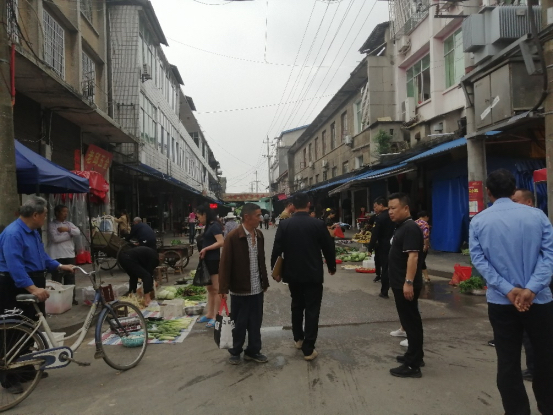 执法人员共走访23家商户、12处摊点,转移规范农贸市场前的乱摆摊点,劝导11家商户及时恢复道路,对12家商户开出限期整改通知书。