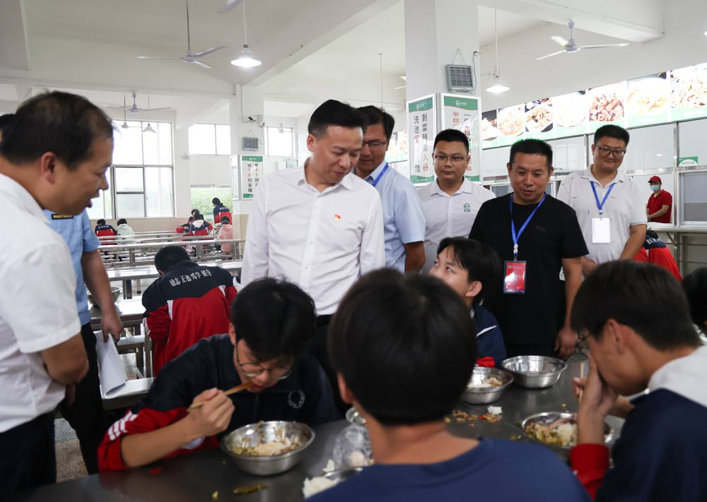 “你觉得食堂饭菜的味道怎么样?”“菜品丰不丰富?”周鹏随后来到华容三中食堂,他亲切地与学生交谈,详细询问学生学习、生活情况,了解学校食堂环境卫生、食品留样、进货查验及索证索票等情况,要求学校负责人严守食品安全关,守护学生身体健康。