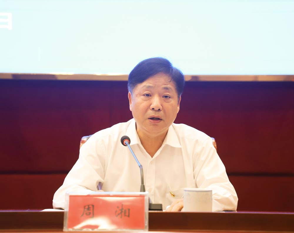 周湘要求,要提高政治站位,准确把握目标要求。切实把思想和行动统一到习近平总书记关于主题教育系列重要讲话和重要指示批示精神上来,坚持主题不变、要求不改、标准不降,牢牢把握“学思想、强党性、重实践、建新功”总要求,坚持不划阶段、不分环节,把理论学习、调查研究、推动发展、检视整改、建章立制等贯通起来、一体推进。教育引导广大党员、干部全面加强理论武装贯穿始终,进一步深刻领悟主题教育的重大意义,准确把握主题教育的目标要求,着力聚焦主题教育的重点内容,突出读原著学原文悟原理,加强对习近平新时代中国特色社会主义思想的理解把握,注重从思想上正本清源、固本培元,从党的创新理论中悟规律、明方向、学方法、增智慧,对照党风要求找差距,对标党性要求查根源,对表党纪要求明举措,匡正干的导向、增强干的动力、形成干的合力。
