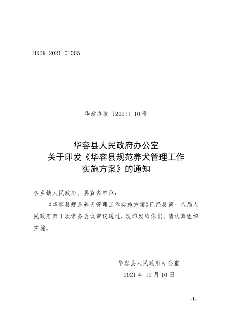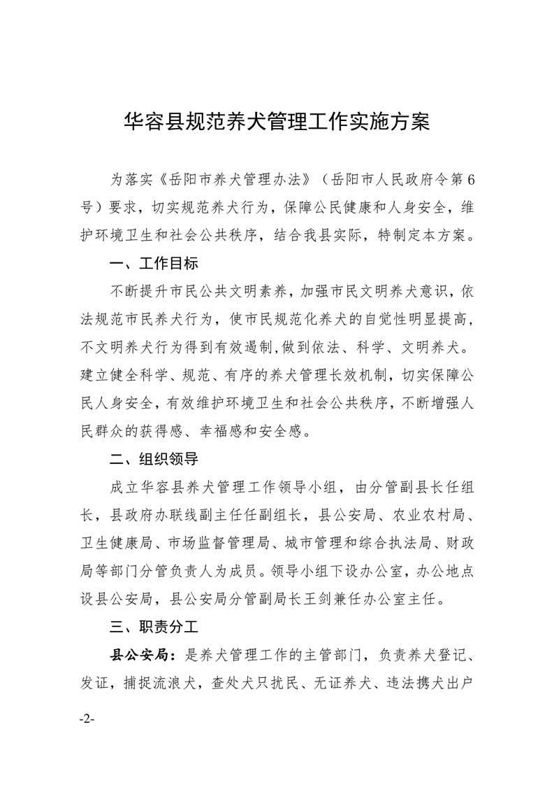 华容县人民政府办公室关于印发《华容县规范养犬管理工作实施方案》的通知