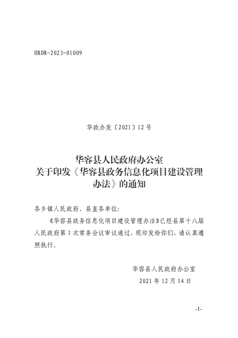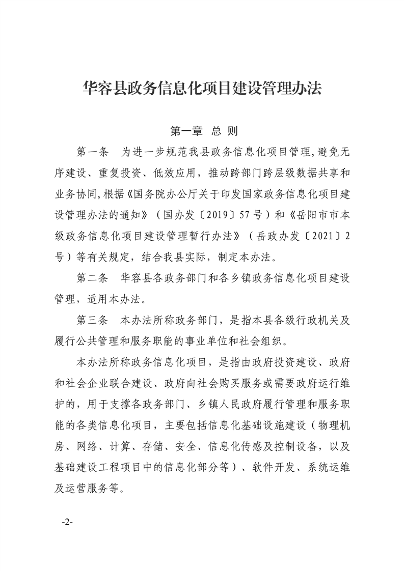 华容县人民政府办公室关于印发《华容县政务信息化项目建设管理办法》的通知
