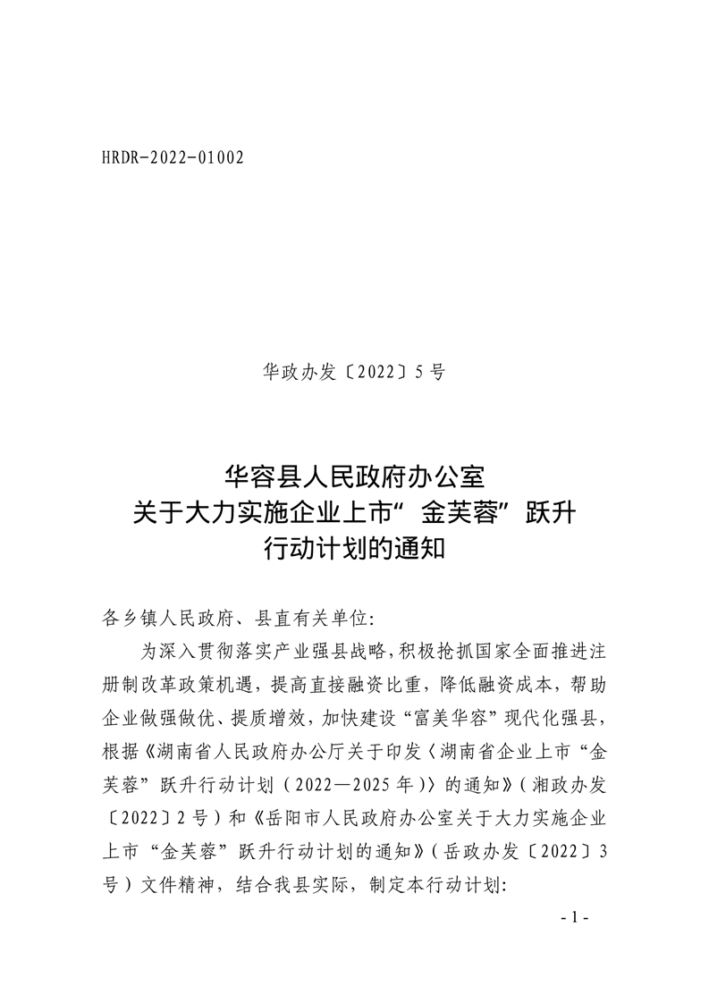 华容县人民政府办公室关于大力实施企业上市“金芙蓉”跃升行动计划的通知