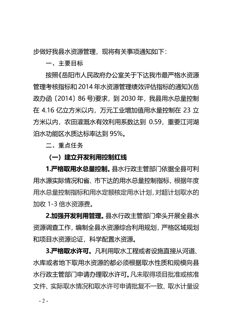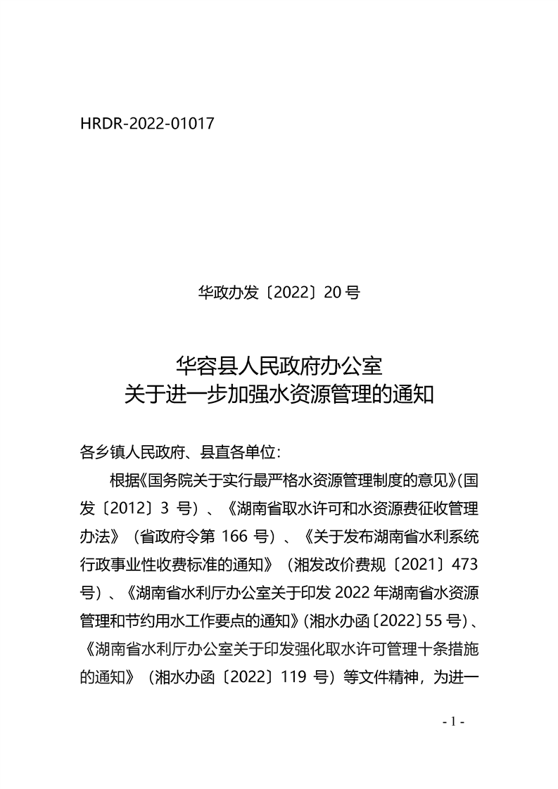 华容县人民政府办公室 关于进一步加强水资源管理的通知