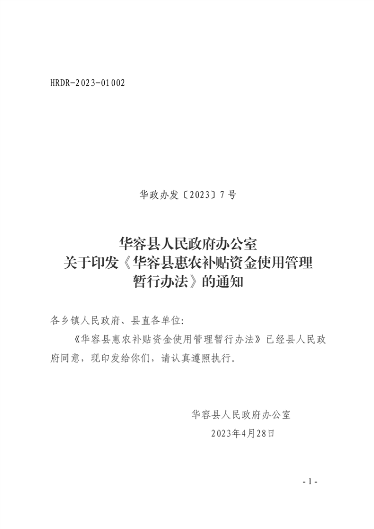 华容县人民政府办公室 关于印发《华容县惠农补贴资金使用管理 暂行办法》的通知