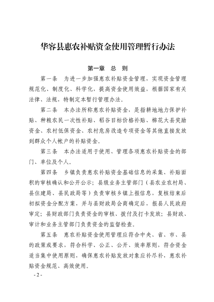 【部门解读】关于《华容县惠农补贴资金使用管理暂行办法》的解读说明