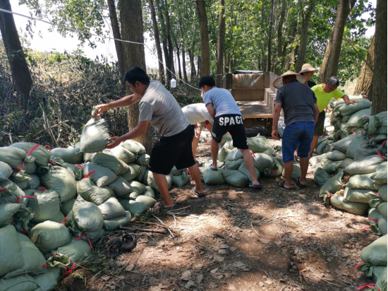 常备队员将袋装砂石搬运到向电引水渠