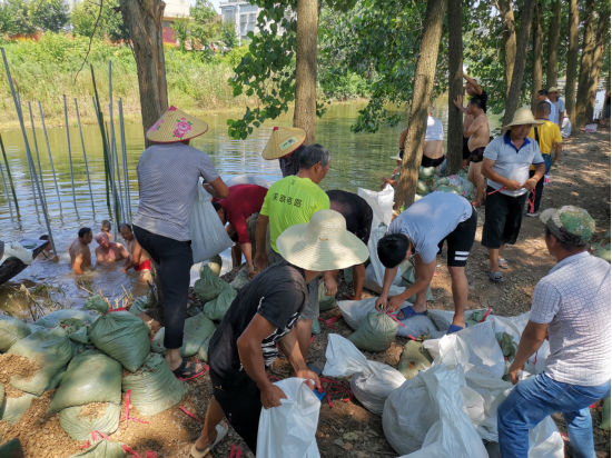 抢险队员和常备队员人链传运砂石