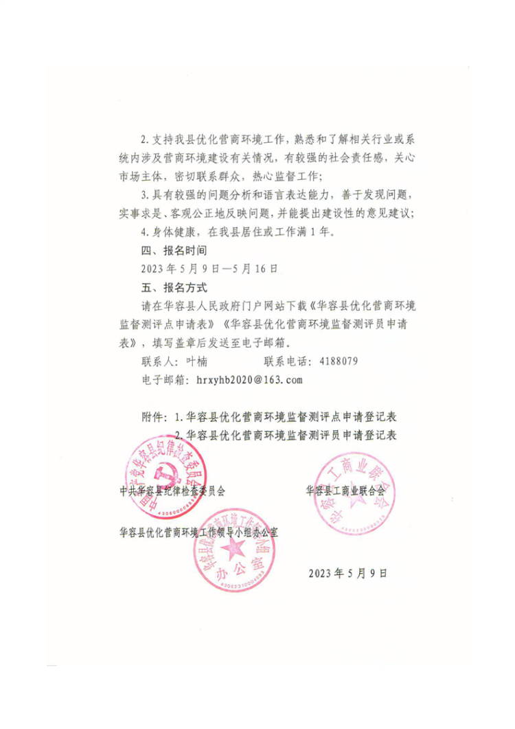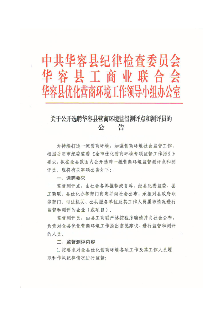 关于公开选聘华容县营商环境监督测评点和测评员的公告
