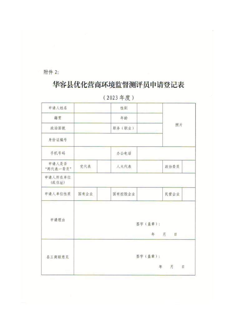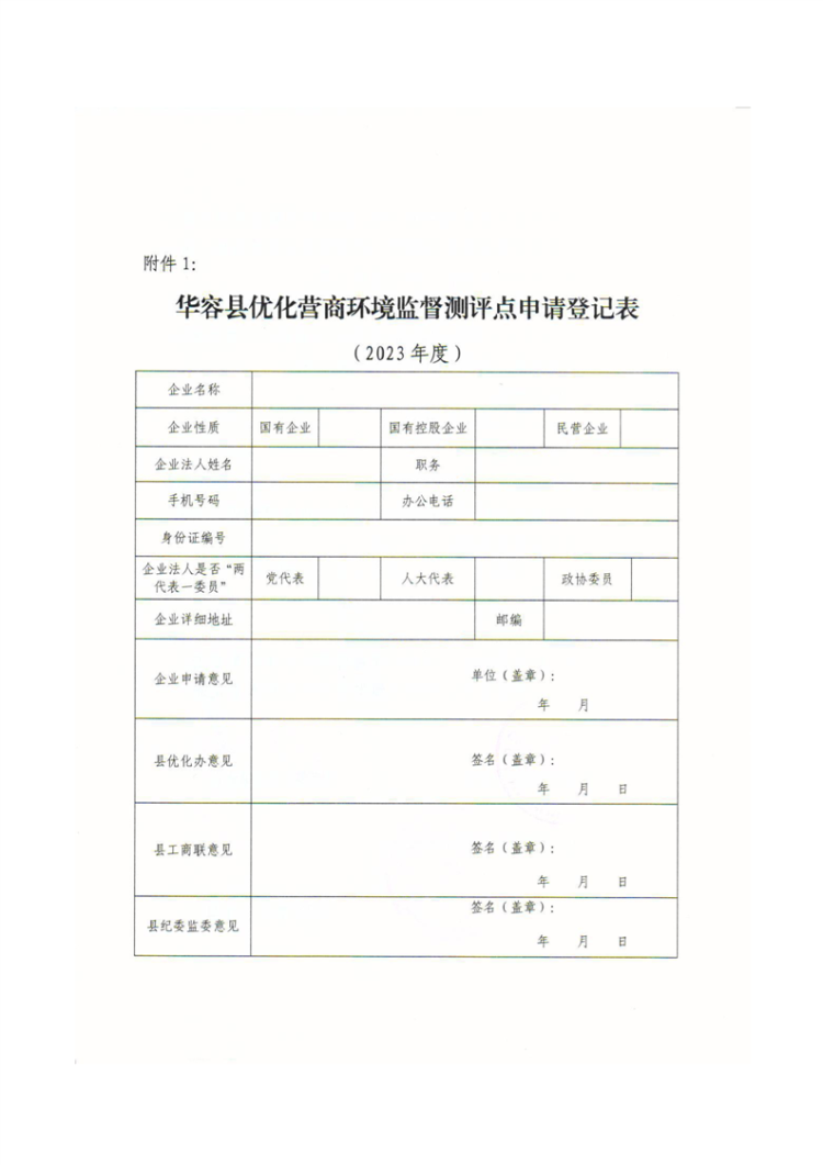 附件 华容县优化营商环境监督测评点申请登记表.docx
