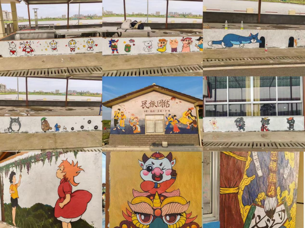 穿着斗篷发射爱心的奥特曼、呆萌的龙猫、惟妙惟肖的喜羊羊与灰太狼、葡萄架下童真童趣、载歌载舞的民族融合大场景……近日,来华容县治河渡镇白莲湖农旅休闲公园游玩的人们发现,公园周边房屋墙体多了些有意思的墙绘,为夏日的白莲湖增添了一抹活力。