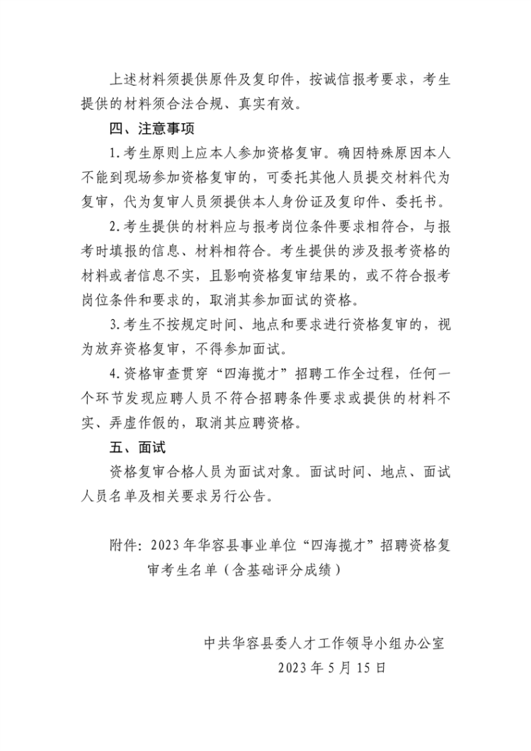 2023年华容县事业单位“四海揽才”招聘工作人员资格复审公告