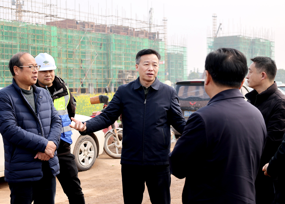 在机器轰鸣的施工现场,周鹏实地踏勘主体施工、配套建设等关键环节,重点检查外架防护网密度、消防通道预留等安全规范落实情况。“既要速度更要质量!”周鹏强调,安置房建设是重大民生工程,必须奋力打造安全零事故、质量全优良、群众真满意的民心项目。