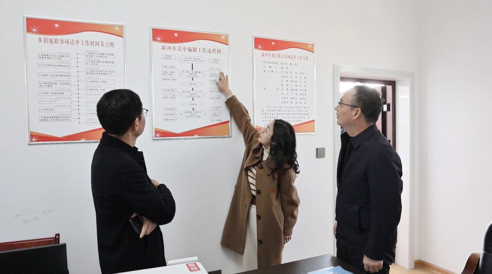 在新河乡,张岳平一行与有关负责同志进行了交流,听取乡镇履职事项清单工作汇报,并就工作中的堵点难点问题进行梳理。张岳平、黄胜指出,建立乡镇履职事项清单,是贯彻落实党的二十届三中全会精神、加强基层治理体系和治理能力现代化建设的重要措施。新河乡要结合实际,细化措施,严格按照步骤和程序,挂图作战,压茬推进,确保各项任务落地见效,推动形成权责清晰、职能明确的工作体系,切实为基层减负赋能,推动各项工作迈上新台阶。