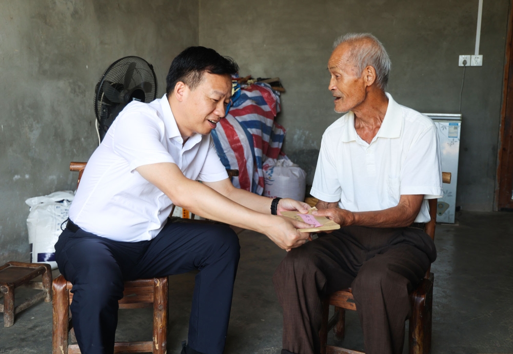 今年81岁的李金湘是有着近60年党龄的老党员。在李金湘家,周鹏与他亲切地拉起了家常,详细了解他的健康、生活、家庭等情况,感谢他多年来为党和国家事业作出的积极贡献,希望他在保重身体、安享晚年的同时,充分发挥老党员传帮带和党员家庭户的示范引领作用,带动周边家庭见贤思齐,推动党的事业薪火相传,让红色基因与优良家风在当地传承弘扬。