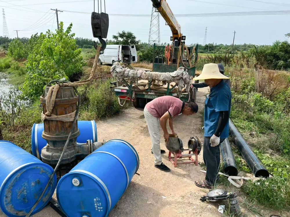 面对严峻的旱情,鼎山村不等不靠,组织群众齐心协力奋战在抗旱一线。该村科学实施“南水北调”工程:利用大功率抽水泵组作为强劲“心脏”,将鼎山村丁家岭机埠南渠水源北输。这条输水管道如同坚实的“抗旱生命线”贯穿田野,为干渴的田地注入急需的生机。