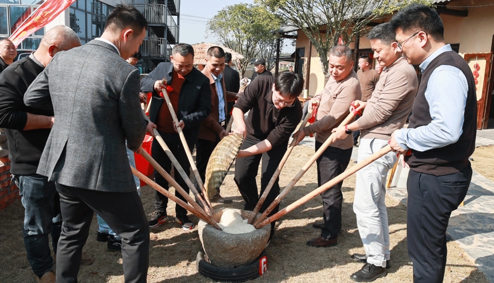 会前,商会实体平台“坤呈小庐”举行剪彩仪式,正式投入使用。该项目集咖啡品鉴、休闲娱乐、农产品展销及直播功能于一体,深度挖掘本土文化资源,融合多元业态,为乡村文旅产业提质升级注入新动能。剪彩仪式后,与会嘉宾与游客共同参与传统打糍粑活动,在欢声笑语中感受浓浓乡情。