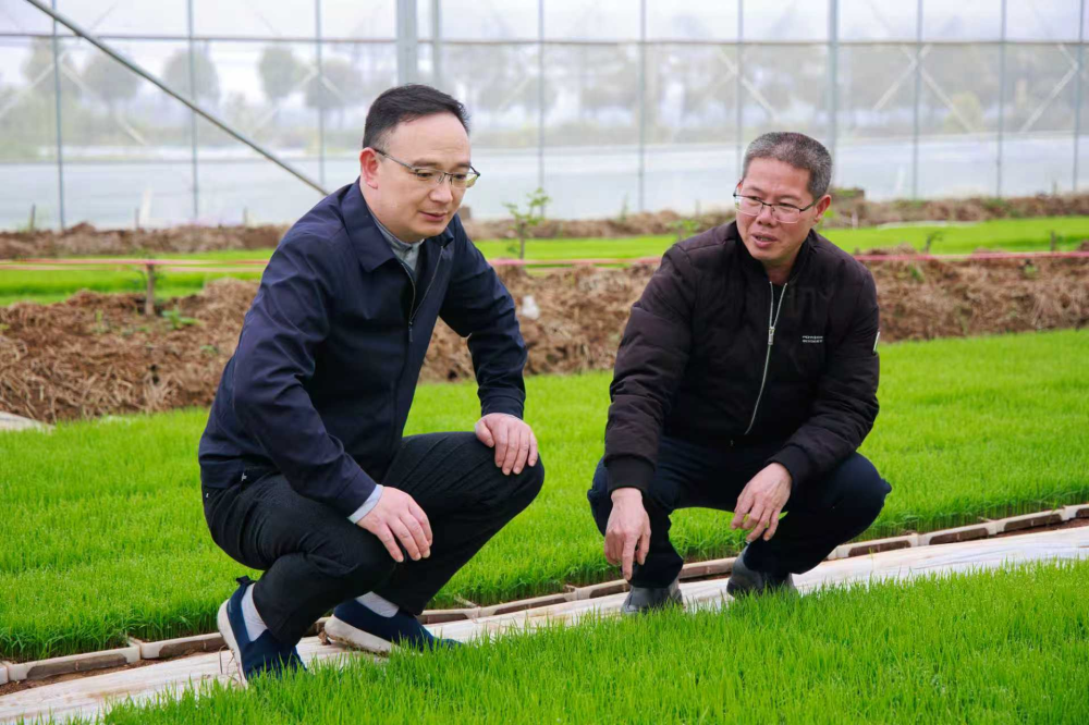 在田家湖生态新区普圣堂社区和禹山镇南竹村,张岳平深入田间地头,仔细察看设施大棚育秧早稻秧苗长势,详细了解农资供应保障等情况。他强调,粮食安全是“国之大者”,农业农村部门和乡镇属地要坚决扛牢粮食安全政治责任,进一步科学调度、抢抓农时,加快落实种植面积任务。要主动及时破解难点堵点,精准落实政策补贴,充分调动村集体合作社和种植大户积极性,推动适度规模经营和社会化服务,全力保障春耕有序推进,为完成全年粮食生产任务打好基础。要推广用好“211”适度规模种粮模式,聚焦好品种、优品质、增产量,充分挖掘“华容稻”粮食区域品牌优势,拓展订单农业等销售渠道,做到高产、优质、优价,不断增加农民种粮效益。