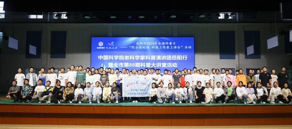 岳阳市2023年全国科普日——中国科学院老科学家科普演讲团岳阳行暨全市科普大讲堂活动9月11日至14日在全市举行,共邀请5位中科院老科学家举办31场科普报告会。本次活动由岳阳市科协、市教体局主办,各县市区科协承办,以“院士进校园,科技工作者上讲台”为主题,为学生们带来一系列有关自动控制与机器人、航天技术、天文学、古生物学、地质学等方面的科普知识讲座。