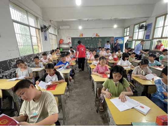 此次活动还将法治宣传阵地延伸至校园。在万庾中心小学,工作人员走进课堂,向学生发放《未成年人保护法》《法律援助法》等法律读物,结合校园霸凌等典型案例,以生动鲜活的方式开展法治教育,引导未成年人增强法治观念,养成尊法学法守法用法的良好习惯。