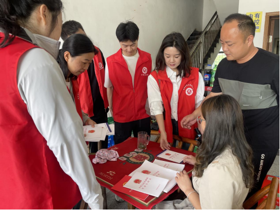 活动现场,法治宣传志愿者通过在村委会悬挂横幅、发放法律书籍、解答法律咨询等形式进行法治宣传。此外,法治宣传志愿者还分组入户,深入村组院落,到农户家中面对面宣传讲解相关法律法规知识,将法律书籍免费发放到农户手中,引发农民群众的热烈反响。