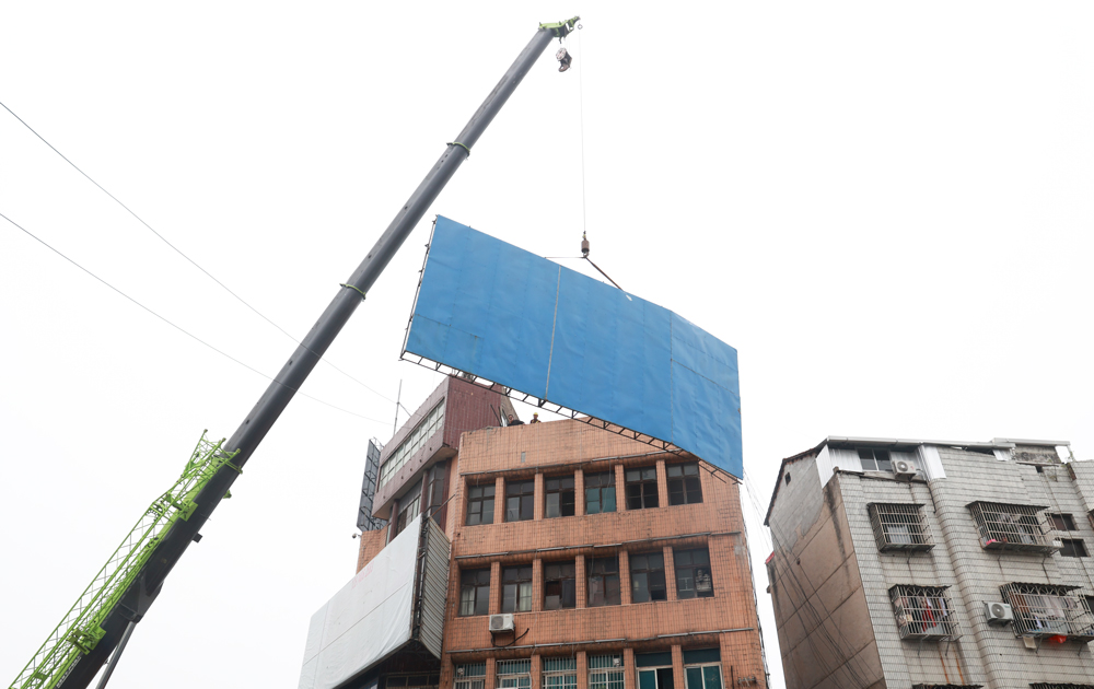 黄湖楼隐患广告牌被拆除 城市“安全防线”再加固
