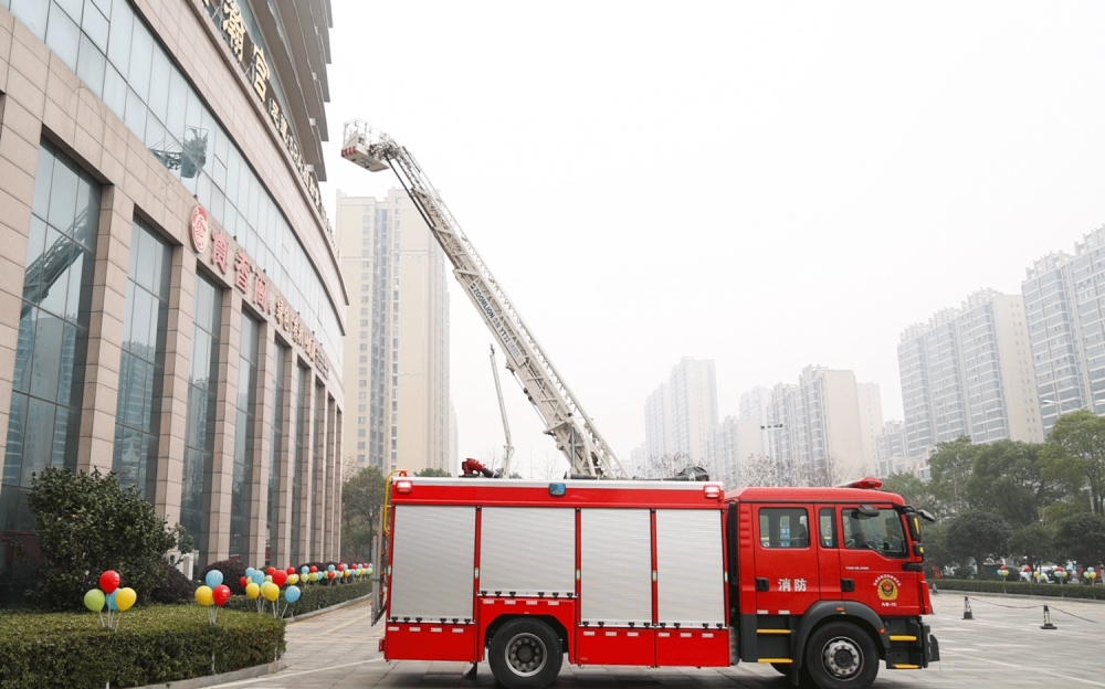 本次演练模拟酒店22层某房间因装修动火不慎引发火灾,现场浓烟弥漫并有人员被困。演练严格遵循“单位自救、辖区处置、联动增援”的程序展开。酒店微型消防站率先启动应急响应,开展初期扑救和疏散引导。随后,辖区消防救援力量迅速到场,运用举高喷射消防车、室内消火栓等多重手段堵截火势,并组织攻坚组深入内部搜救被困人员。社会联动单位按职责分工,有序开展警戒疏导、医疗救护、环境监测、供水供电保障等工作。