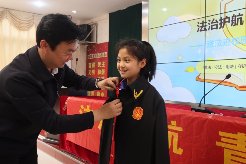 在法官们的帮助下,孩子们穿上正式的法袍,化身“小小法官”,端坐于讲台前,亲身感受法律的庄严与神圣。一颗崇尚法律、追逐正义的梦想种子,在孩子们心中悄然种下。