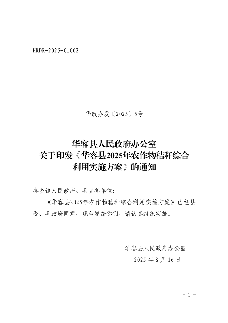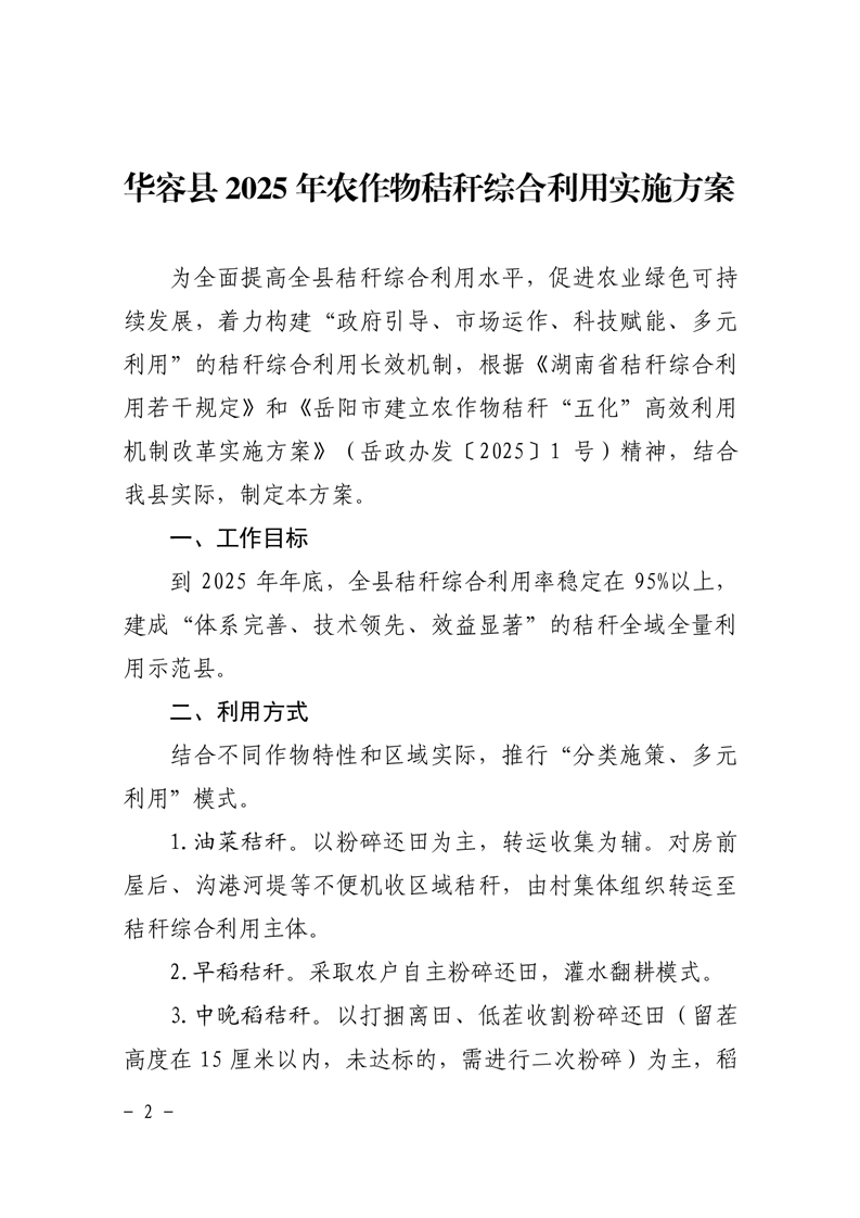 华容县人民政府办公室关于印发《华容县2025年农作物秸秆综合利用实施方案》的通知