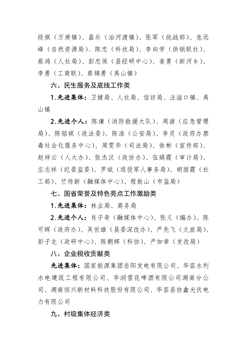 2025年度华容县高质量发展先进集体和先进个人拟表彰名单公示