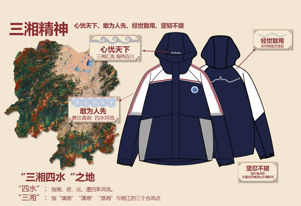 “新的冬季校服穿上太酷了,红黑配色很高级,校徽还是魔术贴的形式,体育课上运动也一点都不紧绷。”实验小学的小宇对着镜子转动身体,随处可见的洞庭湖水波纹和岳阳楼盔顶造型设计让他爱不释手。这份喜爱,源于校服设计中对文化与功能的双重打磨。