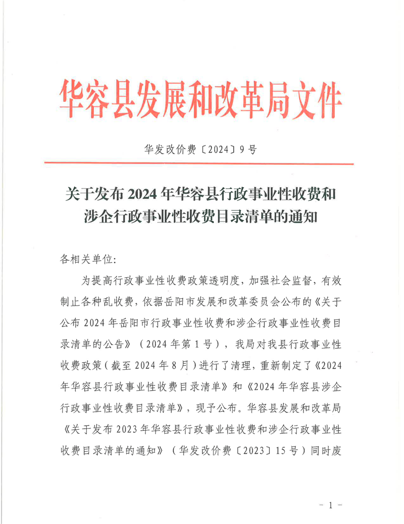 2024年华容县行政事业性和涉企行政事业性目录清单华发改价费〔2024〕9号2024-11-07