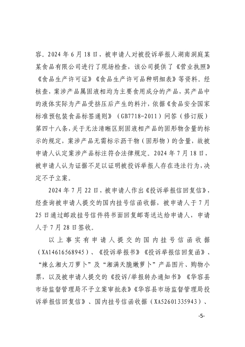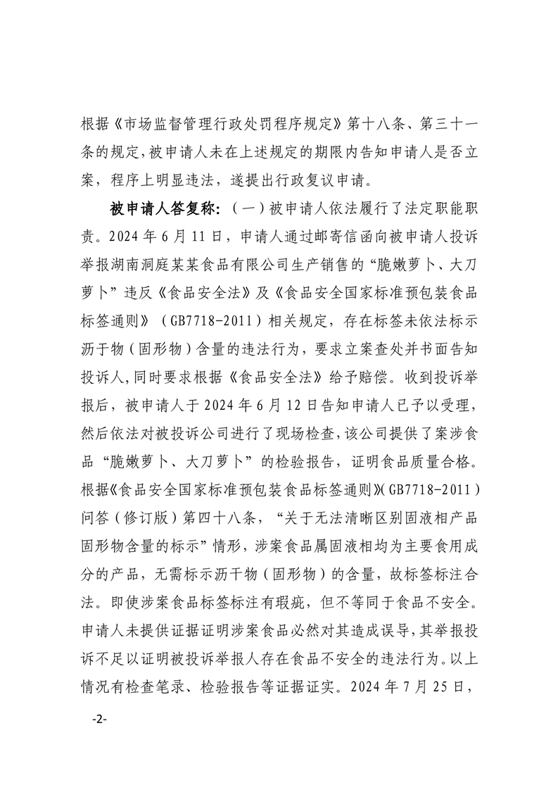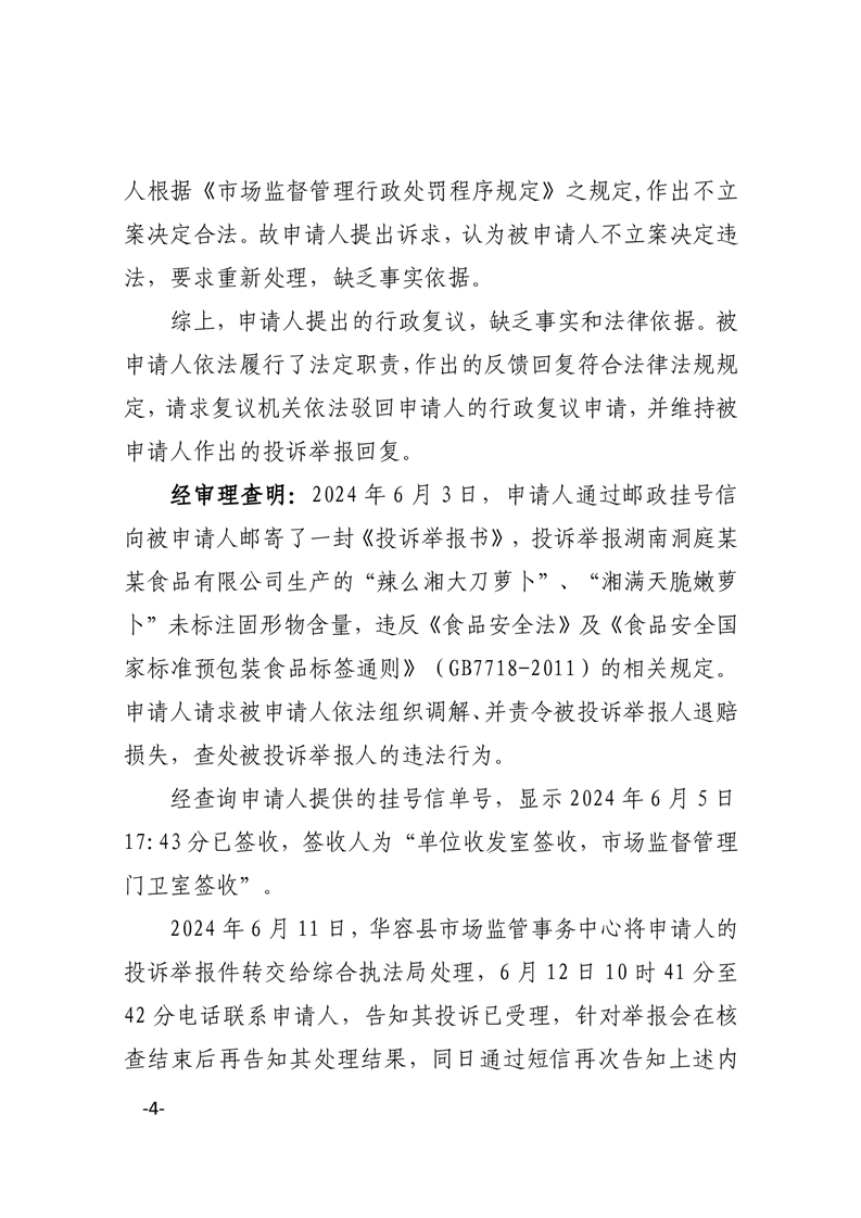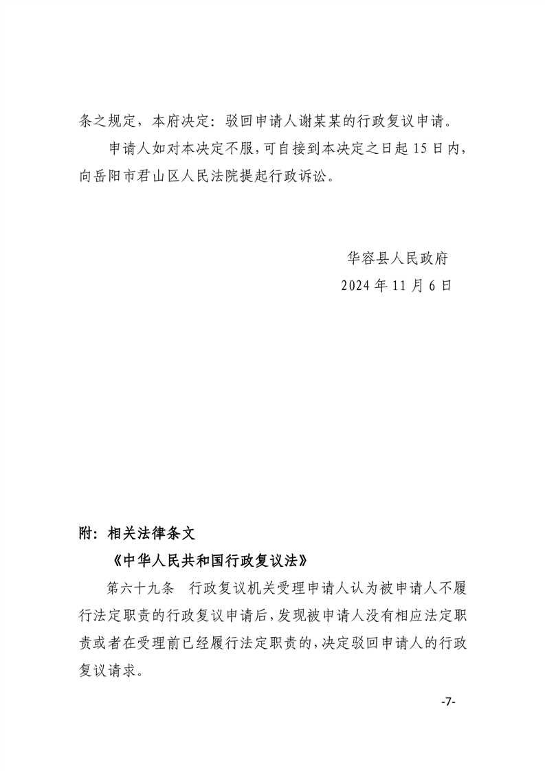 华府复决字〔2024〕31号申请人谢某某不服被申请人华容县市场监督管理局未在法定期限内告知其是否立案决定一案行政复议决定书
