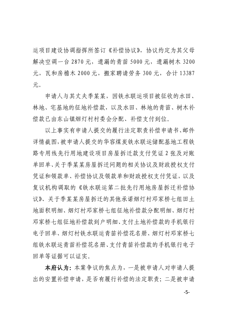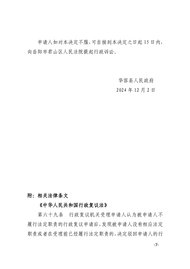 华府复决字〔2024〕37号 申请人秦某某对被申请人东山镇人民政府在法定期限内未对其提出的《安置补偿申请》进行答复不服一案行政复议决定书