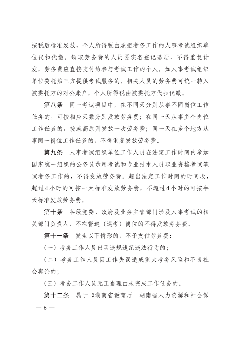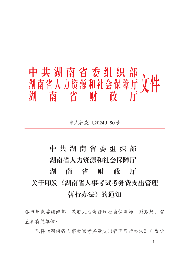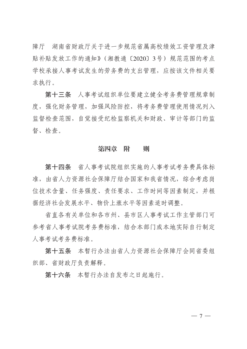 中共湖南省委组织部、湖南省人力资源和社会保障厅、湖南省财政厅关于印发《湖南省人事考试考务费支出管理暂行办法》的通知