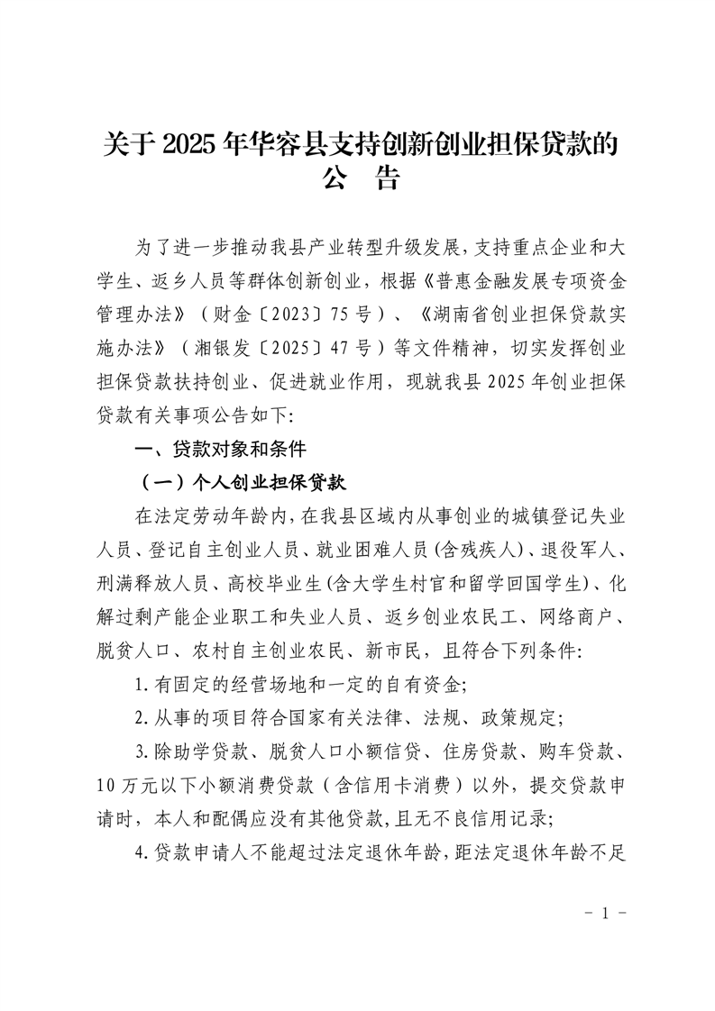 关于2025年华容县支持企业和个人创新创业担保贷款的公告