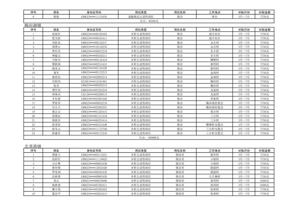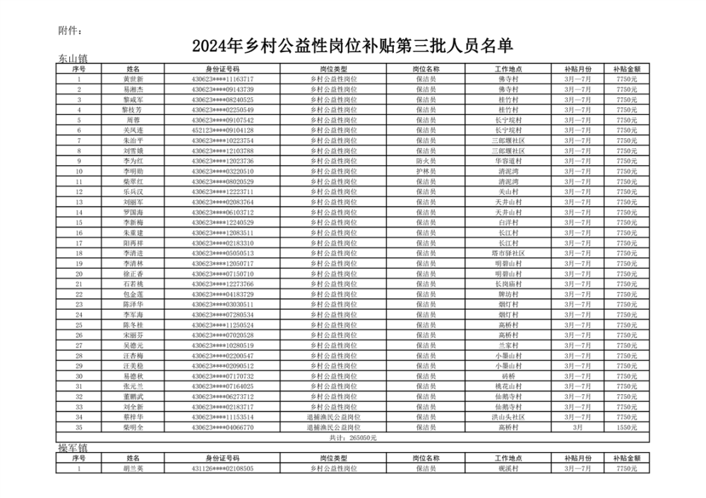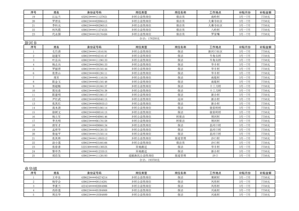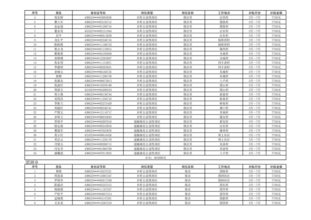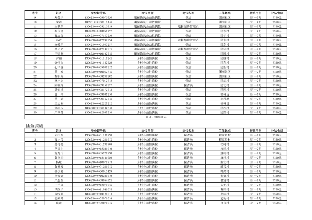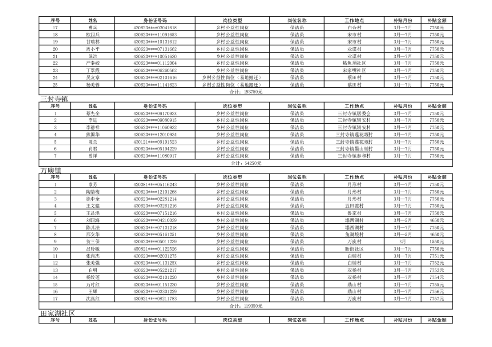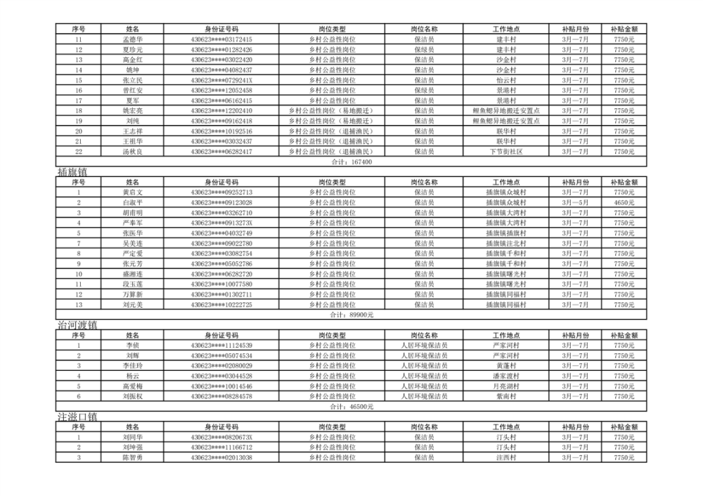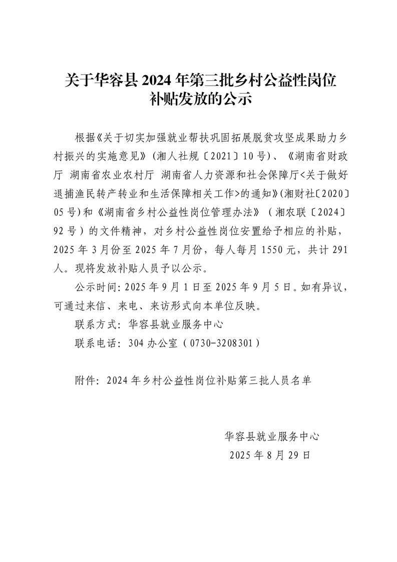 关于华容县2024年第三批乡村公益性岗位补贴发放的公示