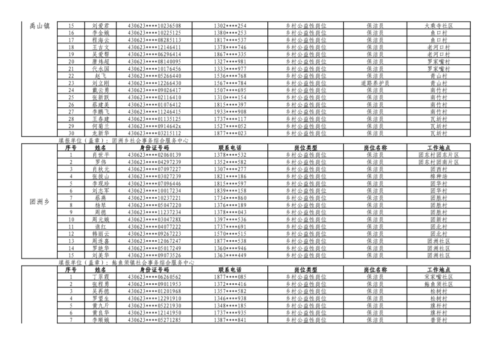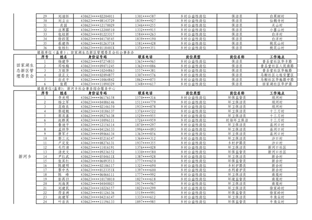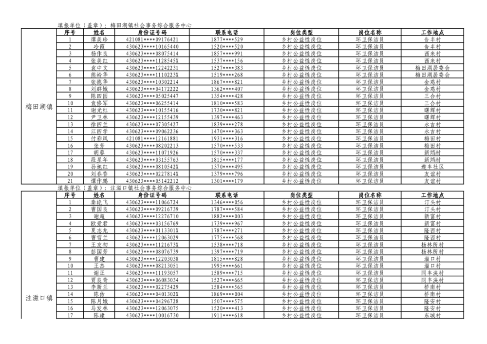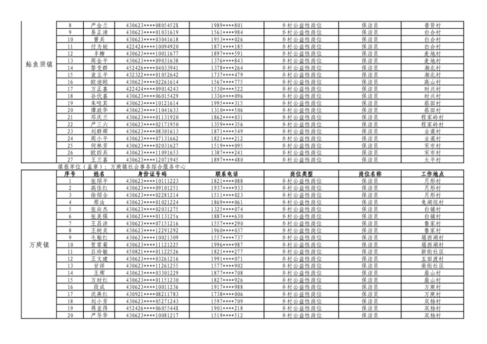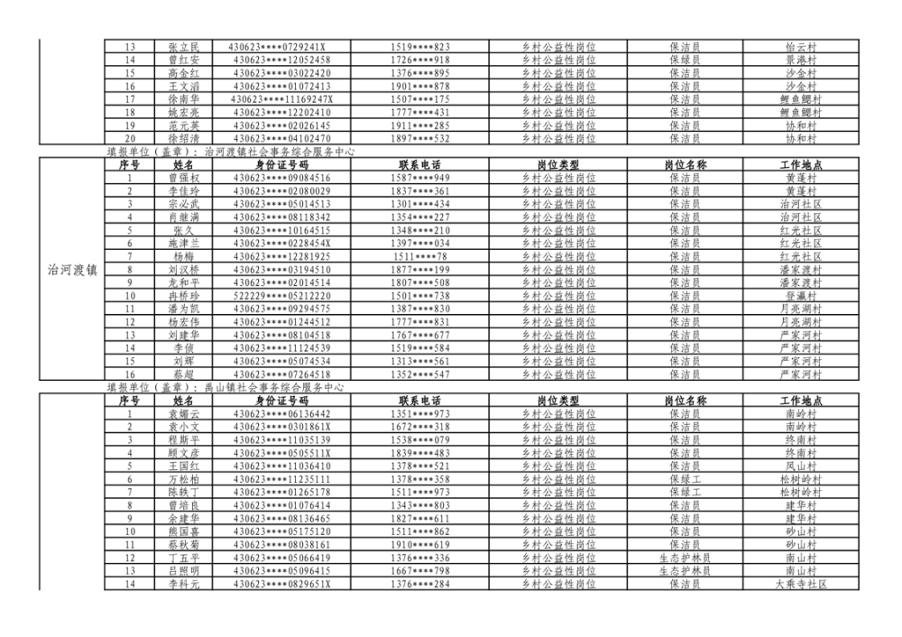 华容县2025年乡村公益性岗位拟上岗人员公示