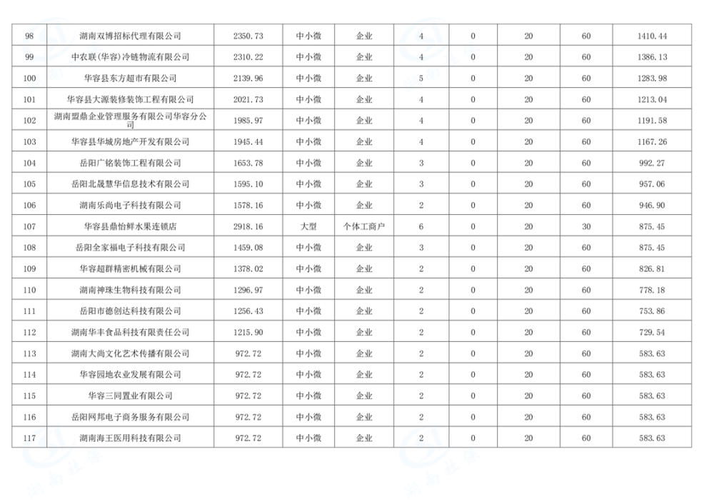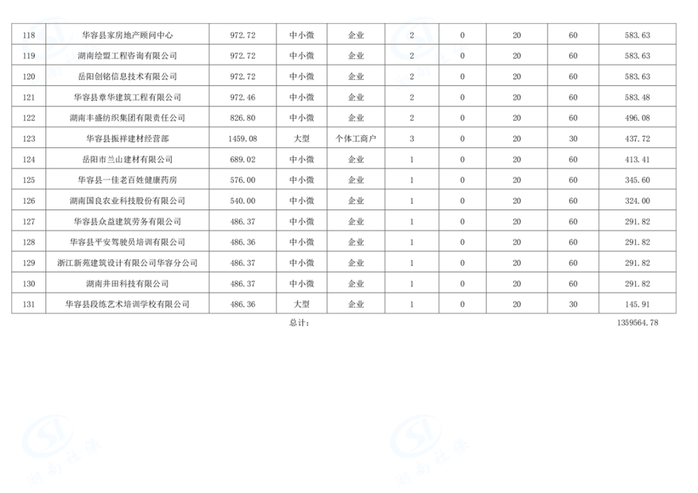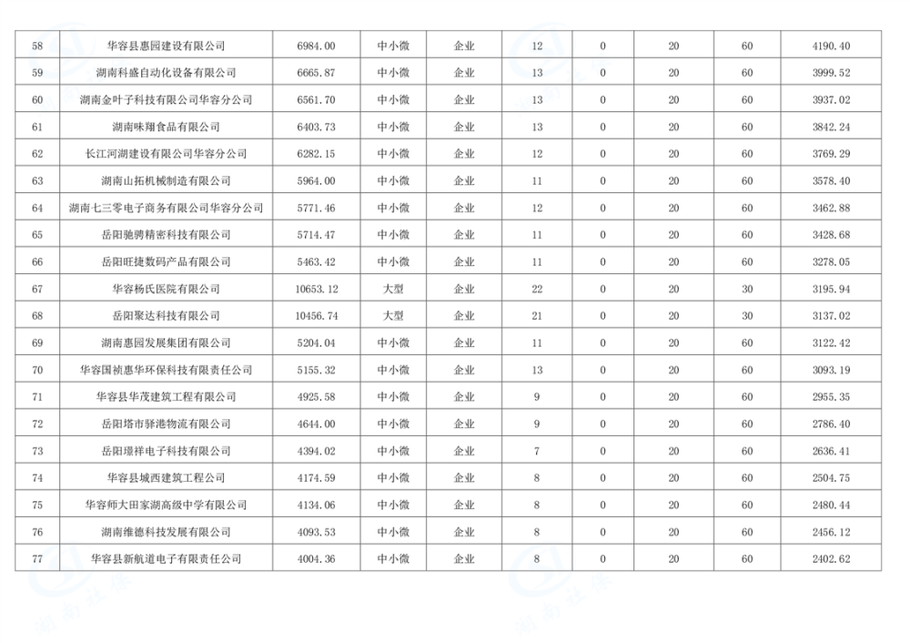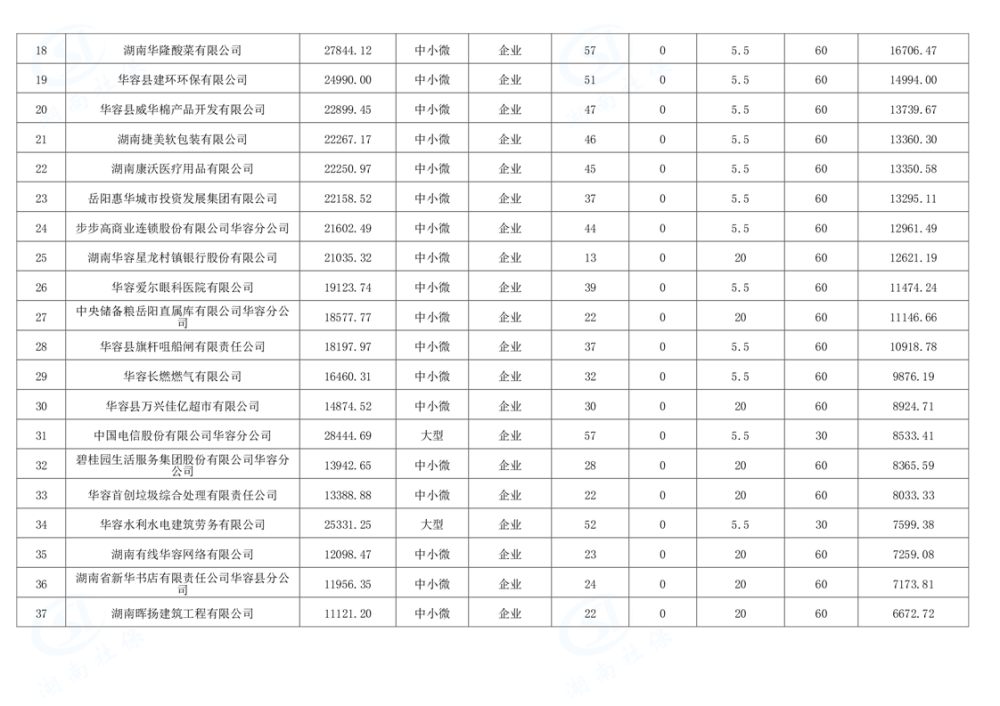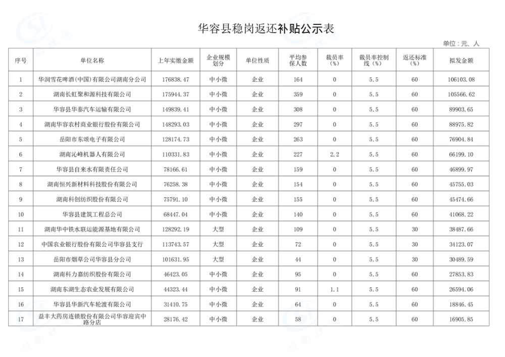 华容县稳岗返还补贴公示表