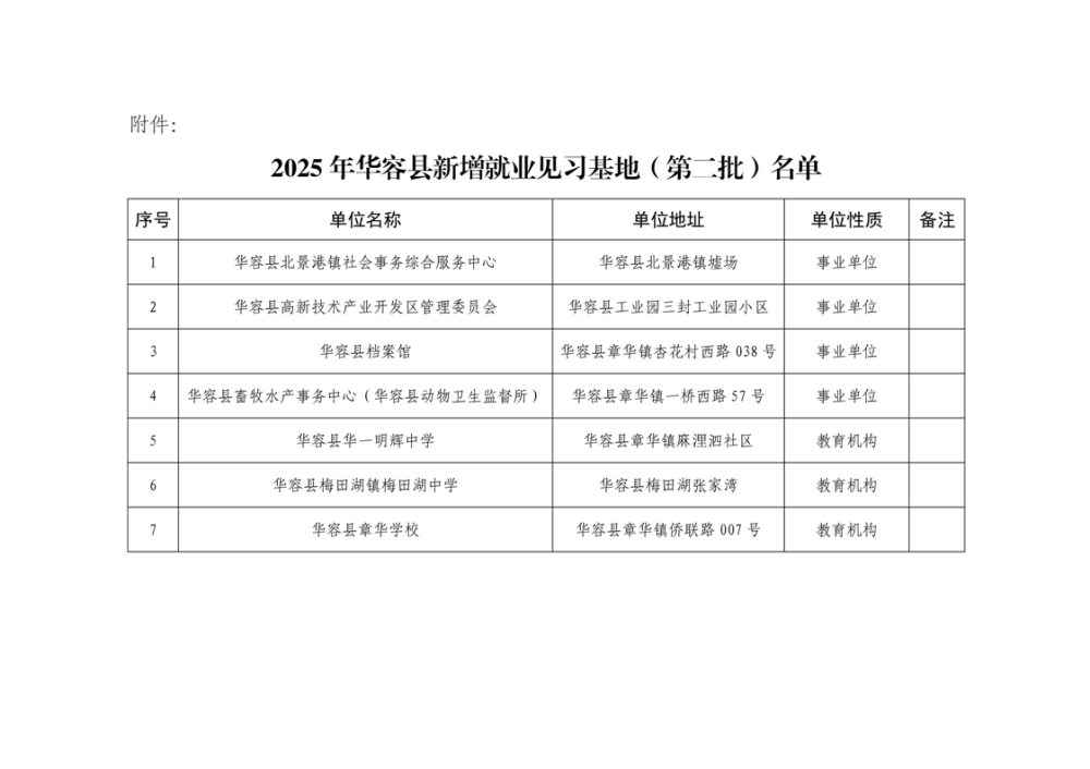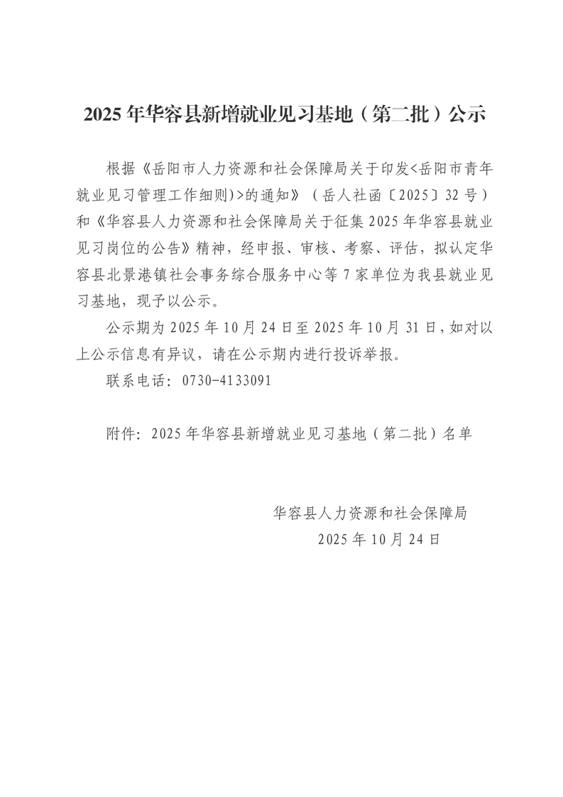 2025年华容县新增就业见习基地(第二批)公示