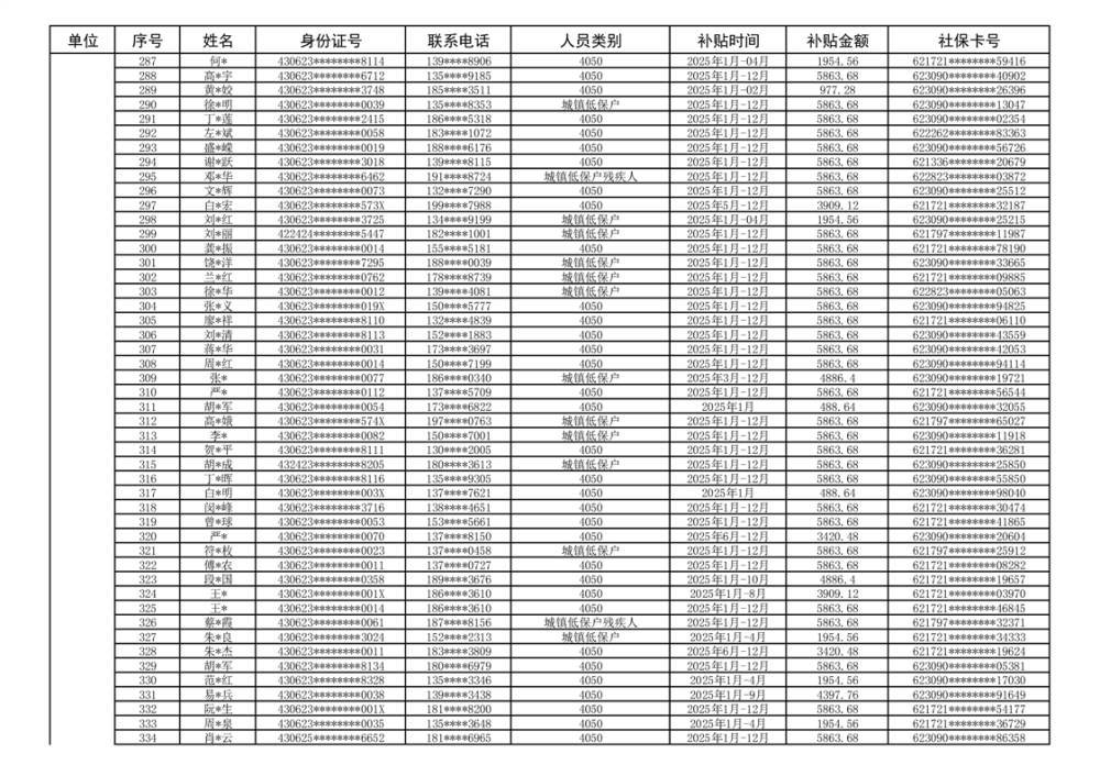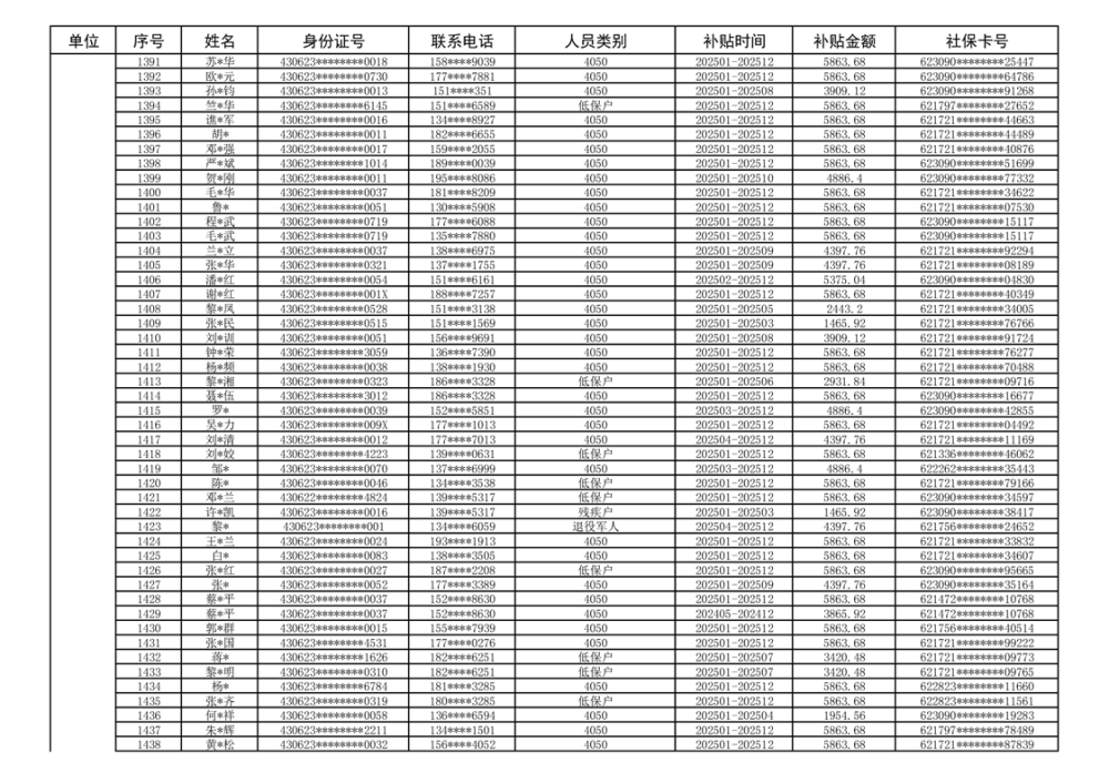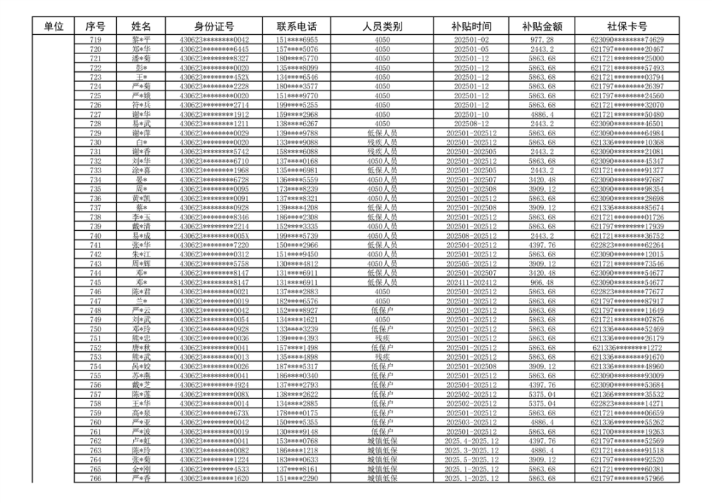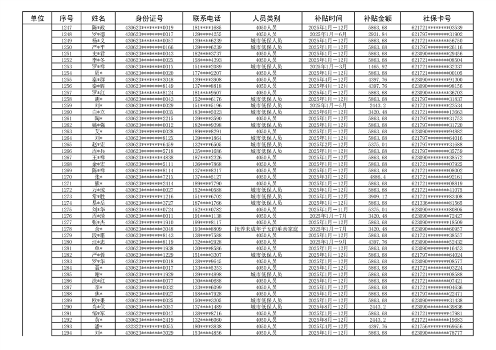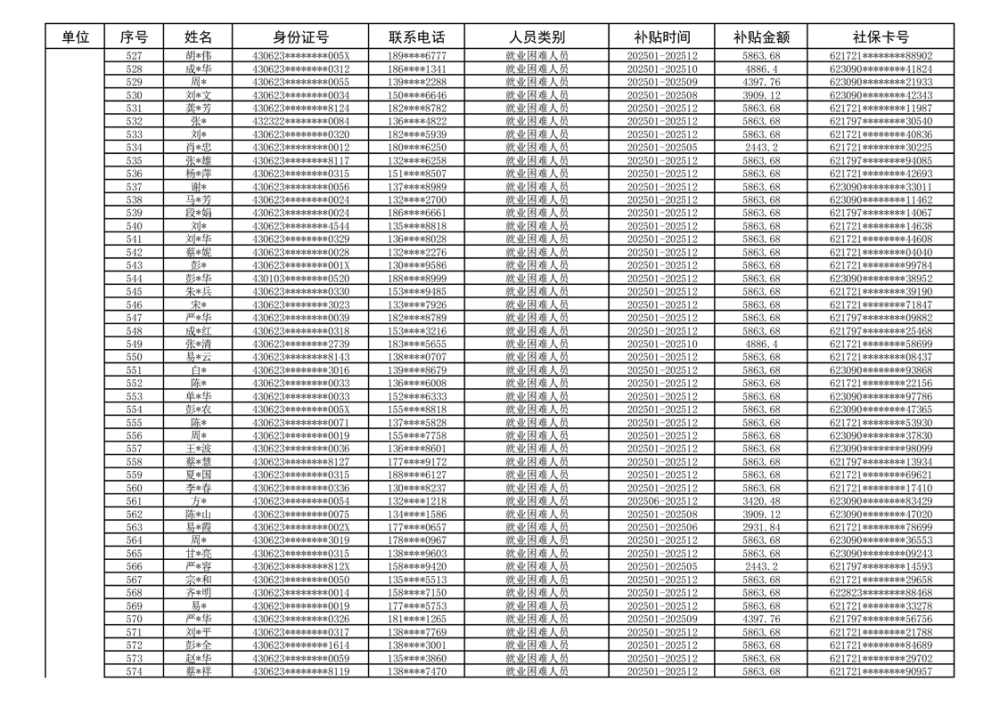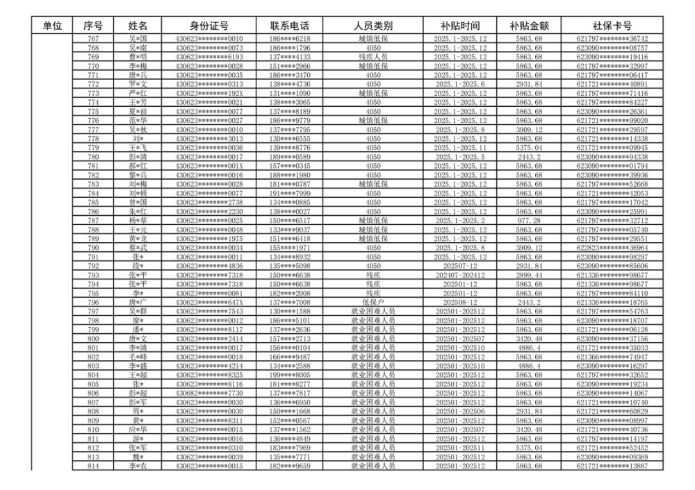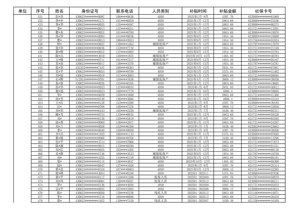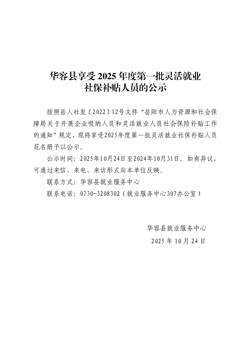 华容县享受2025年度第一批灵活就业社保补贴人员的公示