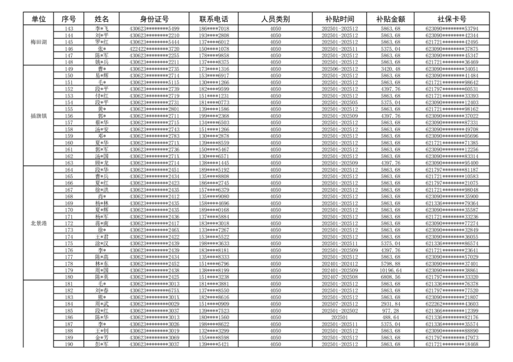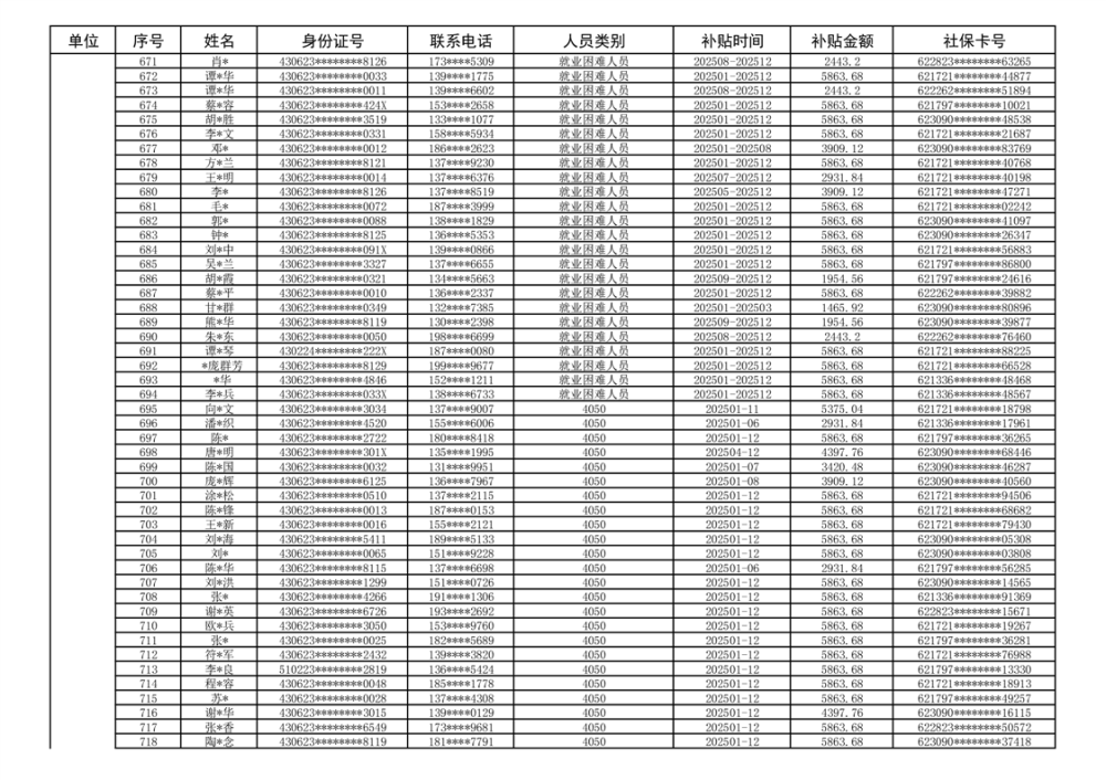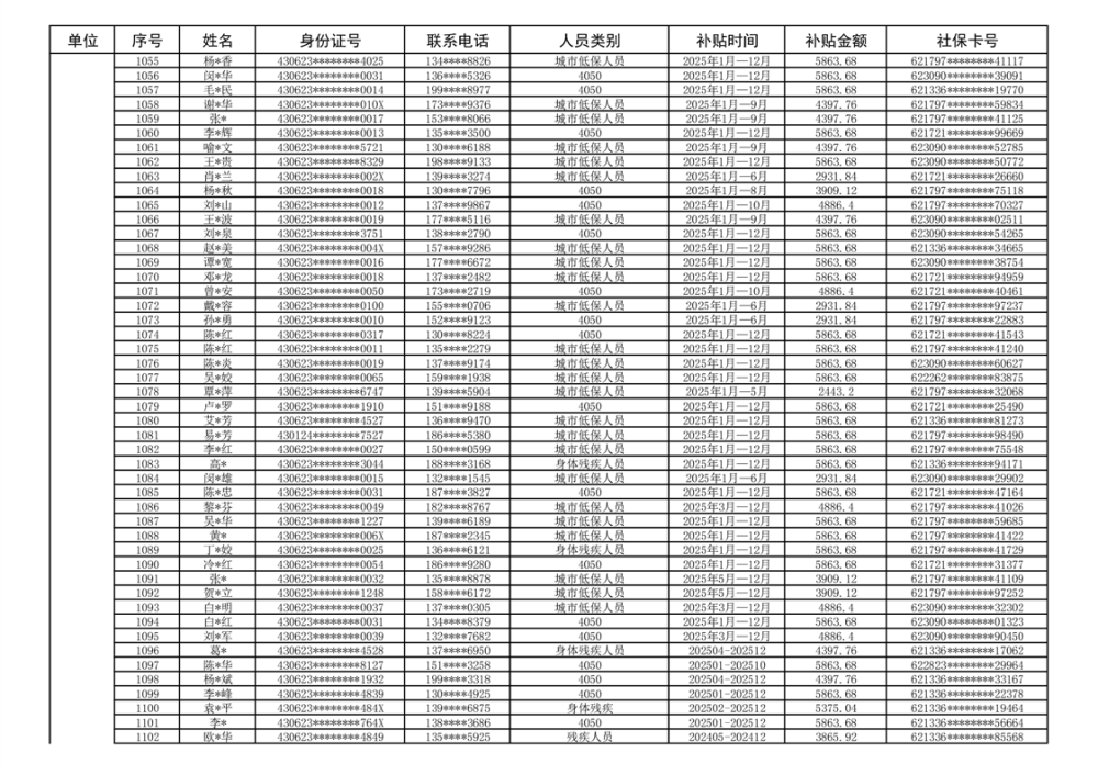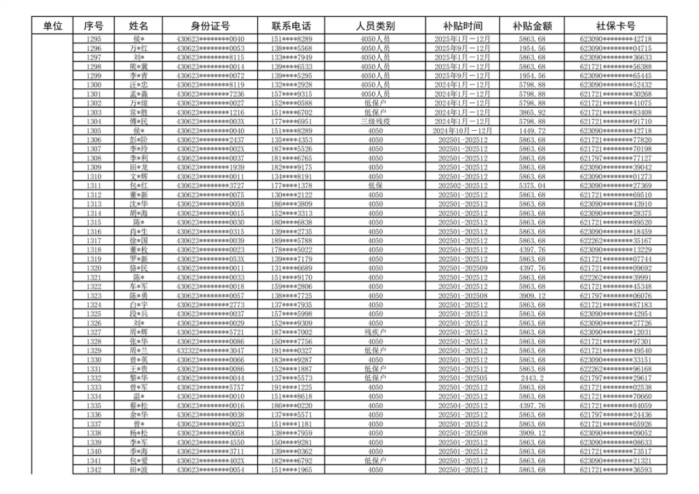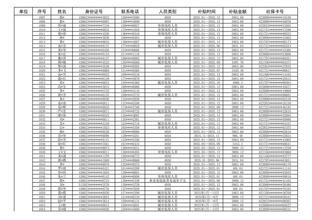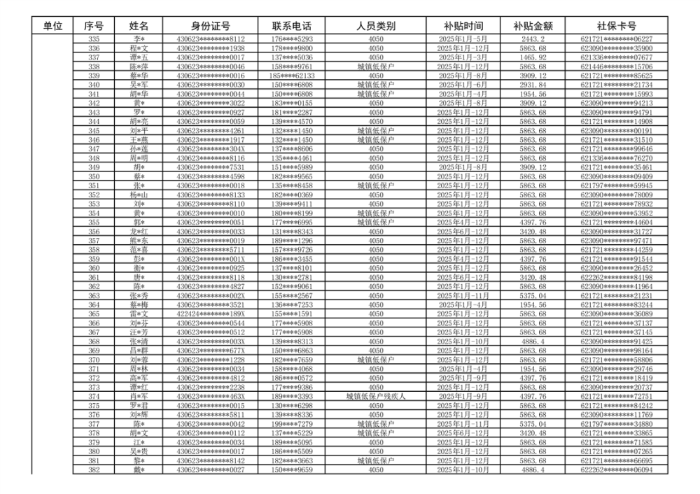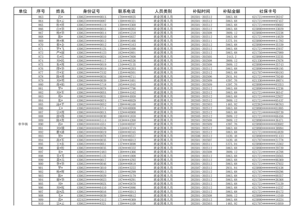 华容县享受2025年度第一批灵活就业社保补贴人员的公示