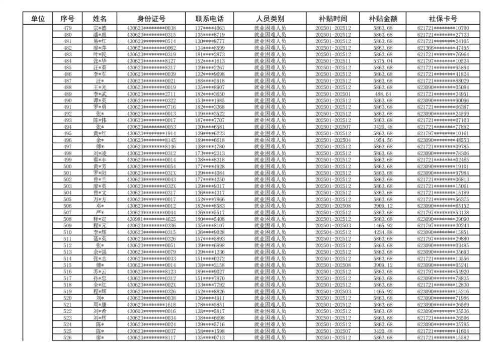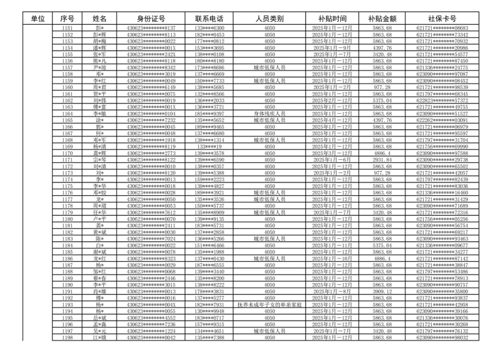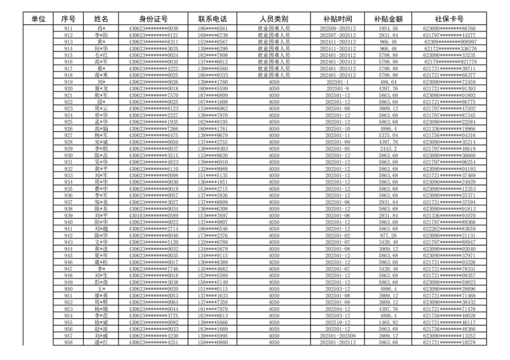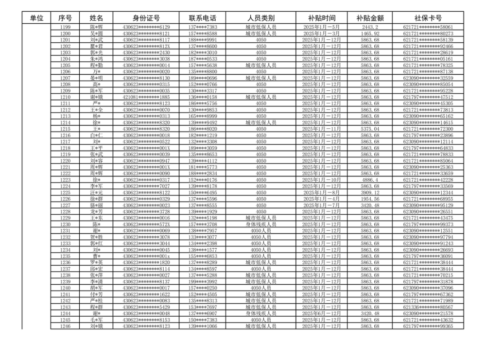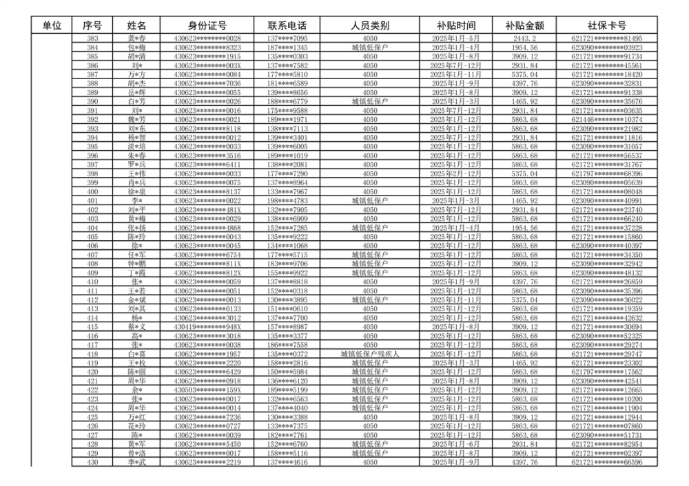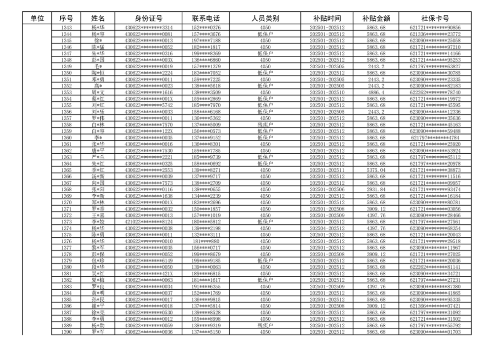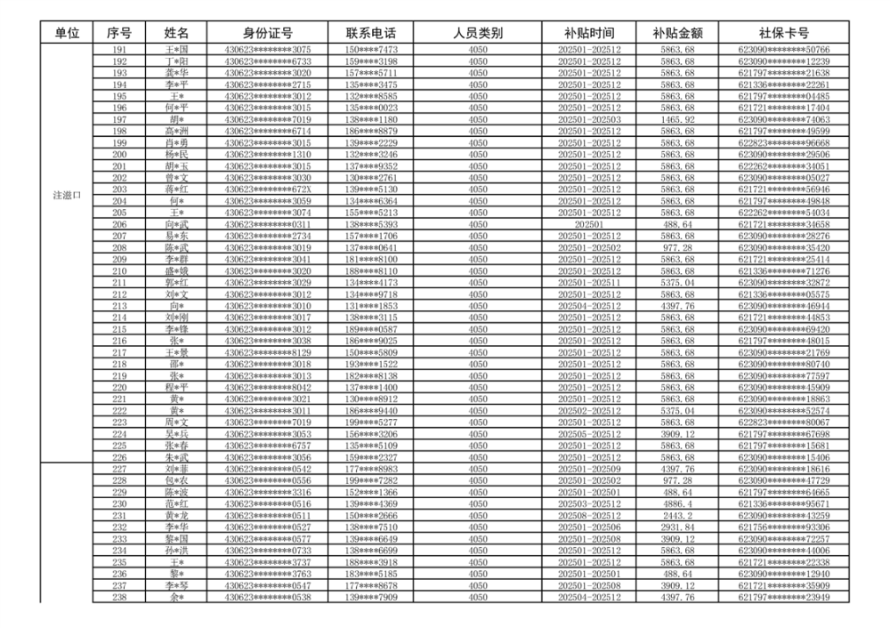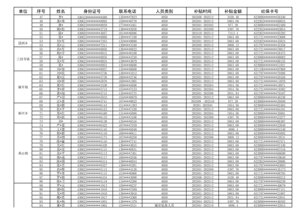 华容县享受2025年度第一批灵活就业社保补贴人员的公示