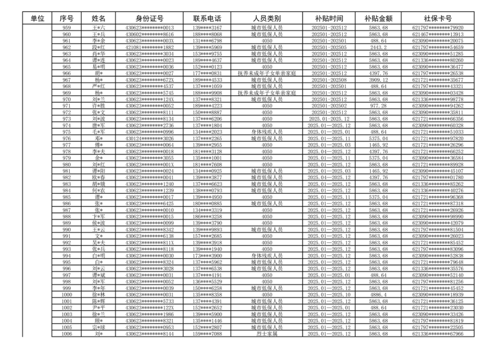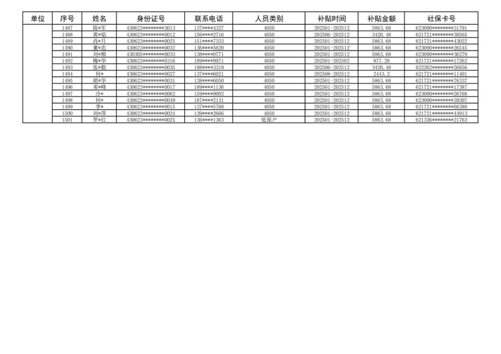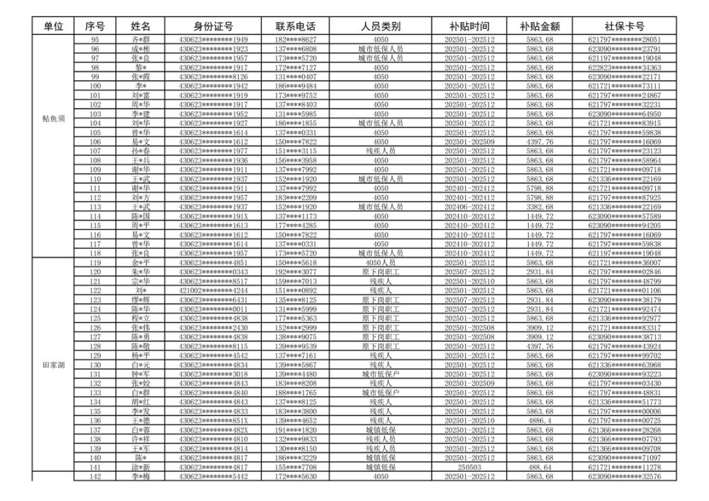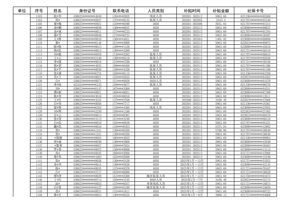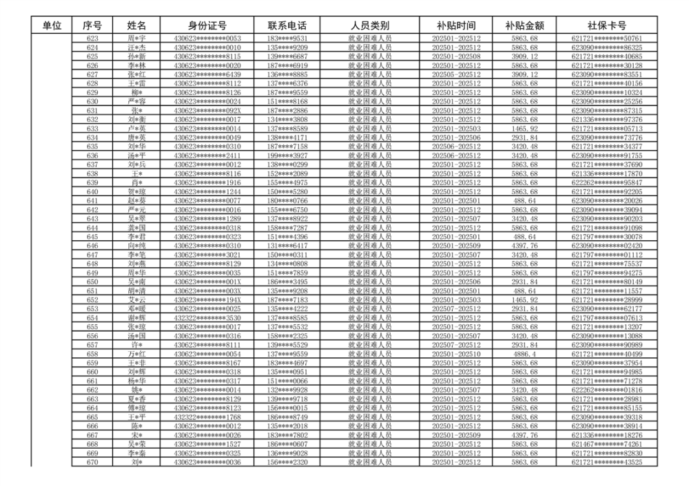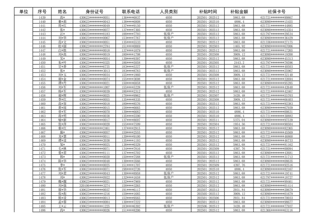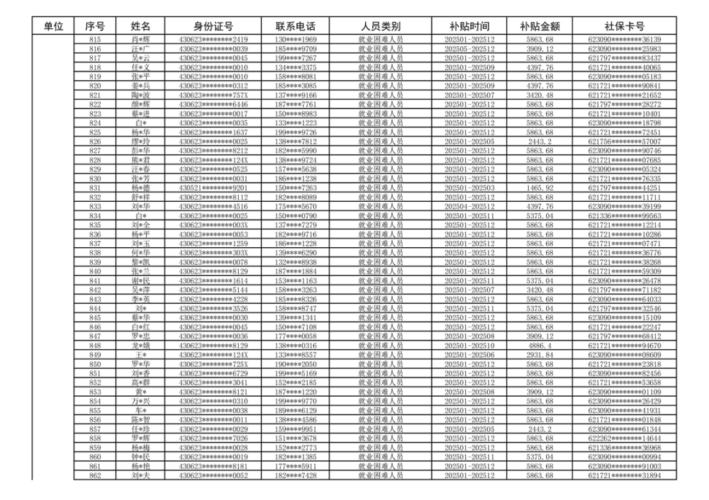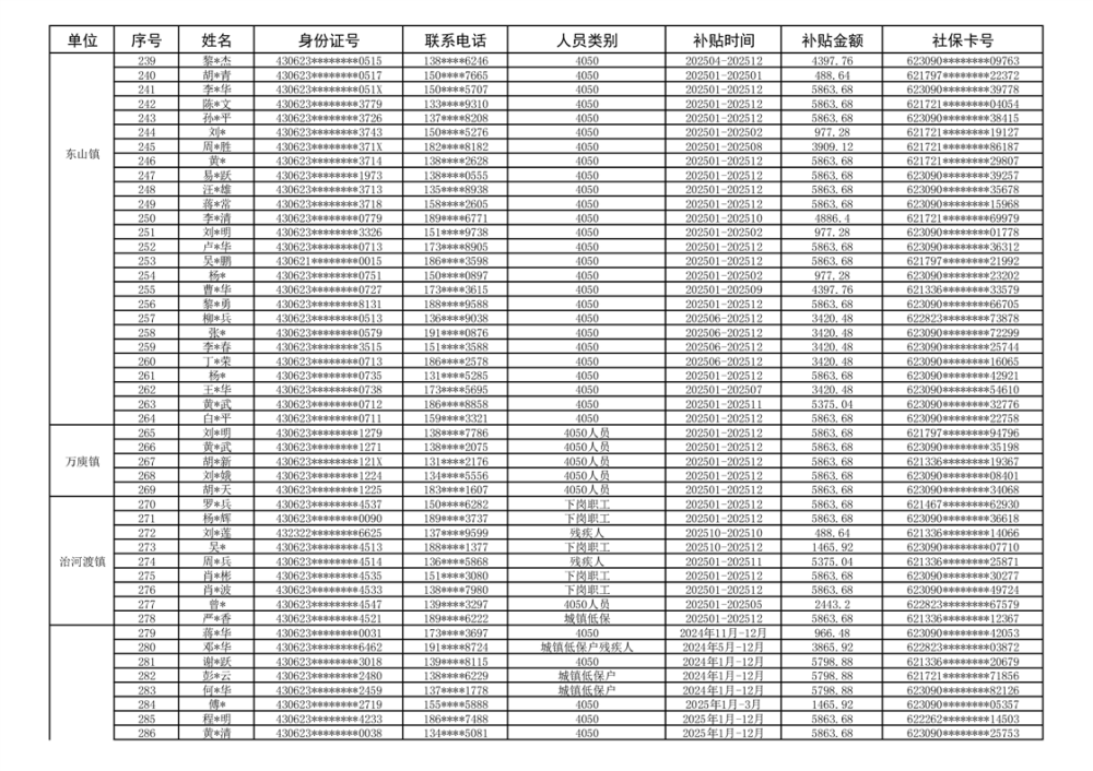 华容县享受2025年度第一批灵活就业社保补贴人员的公示