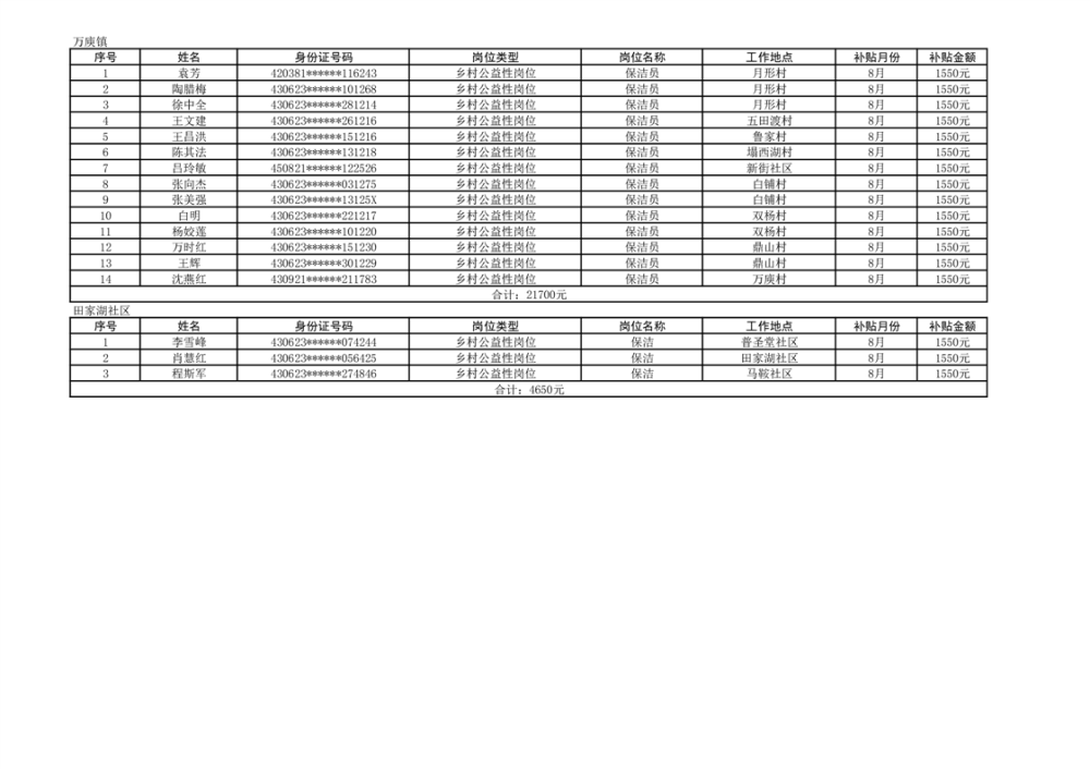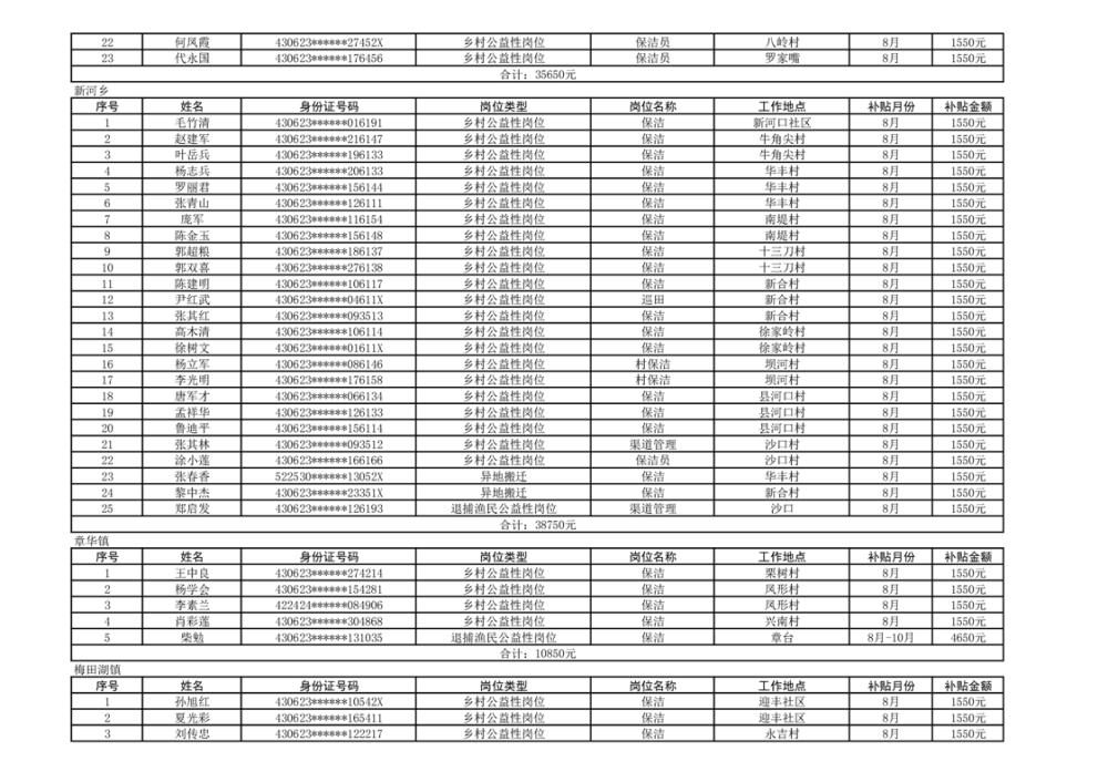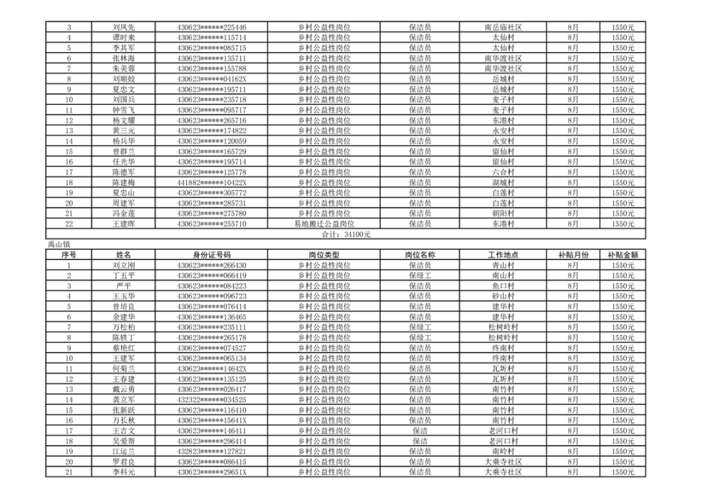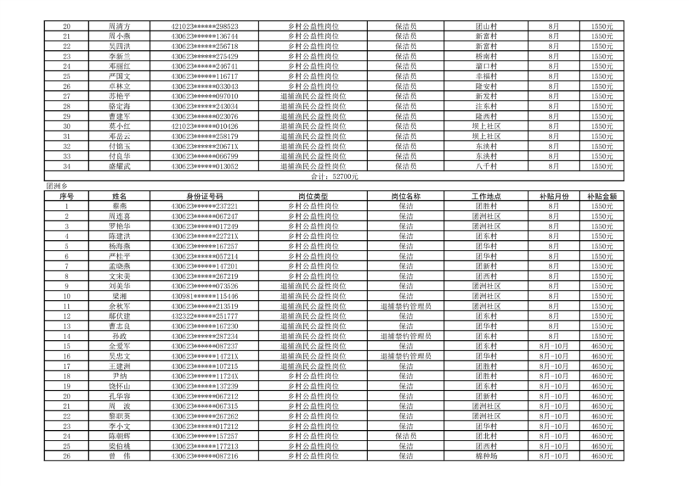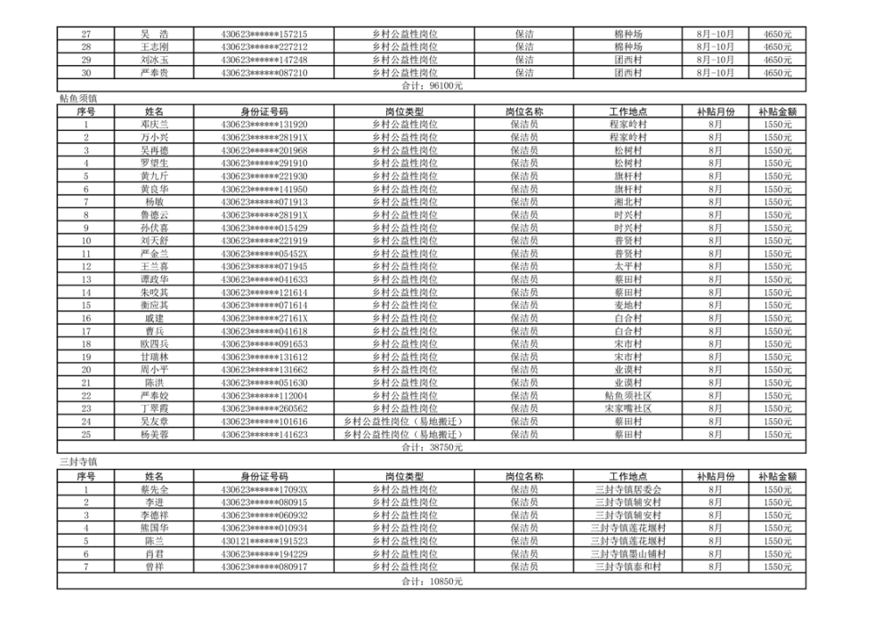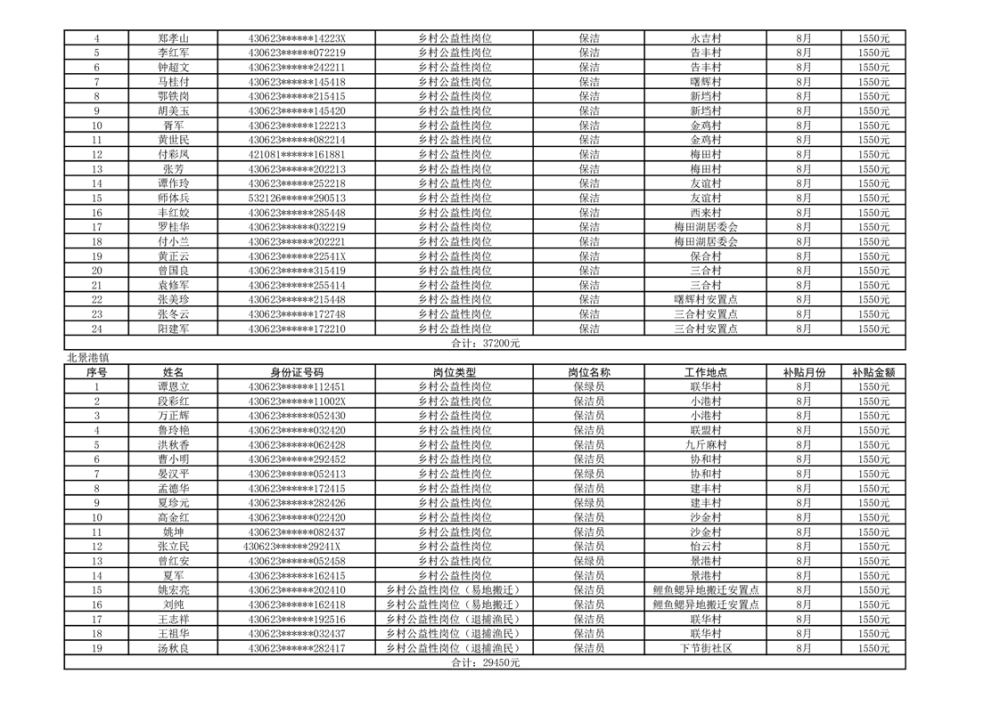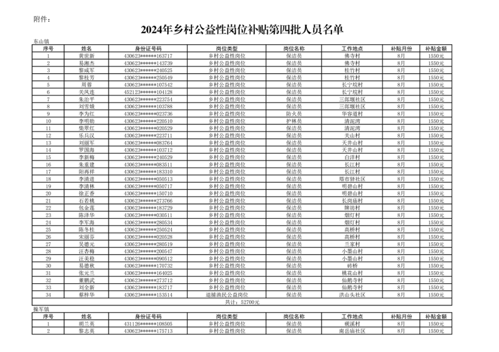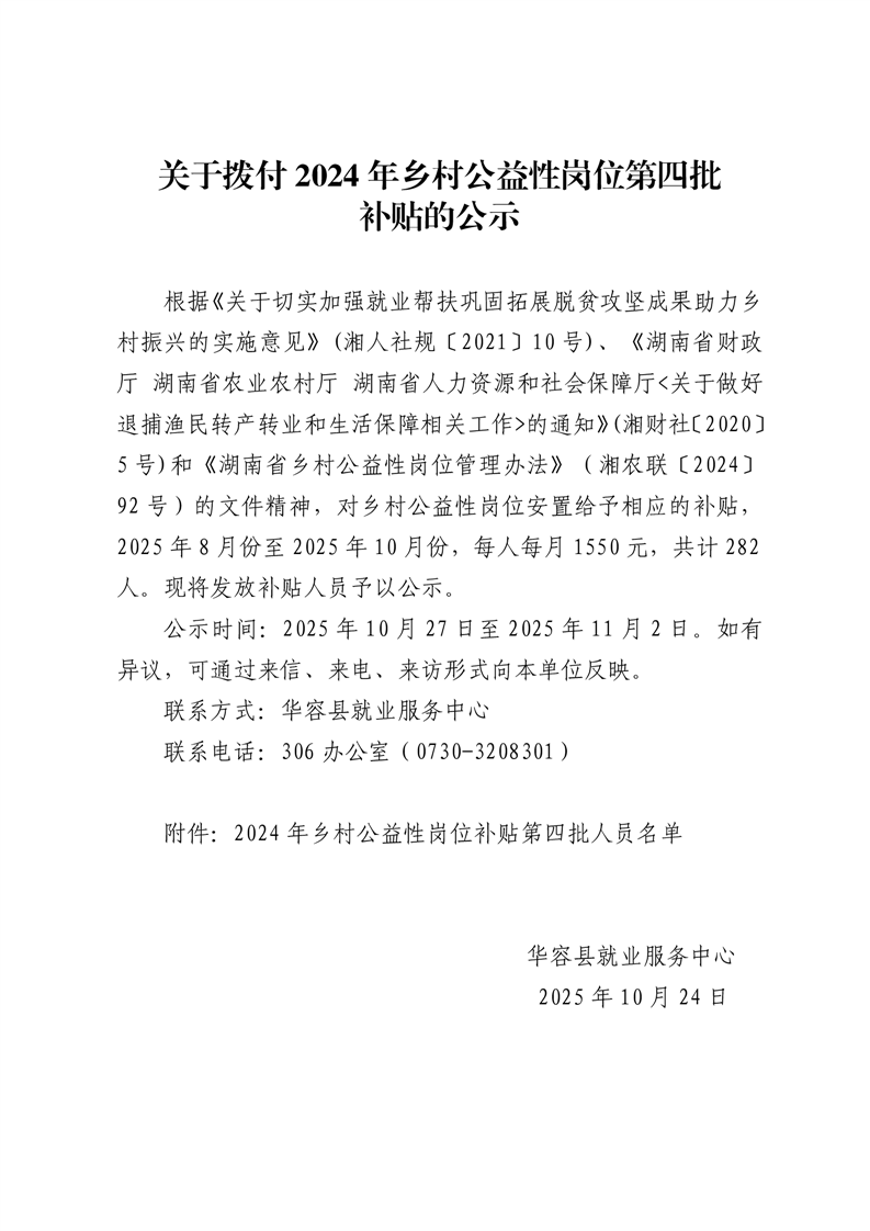 关于拨付2024年乡村公益性岗位第四批补贴的公示