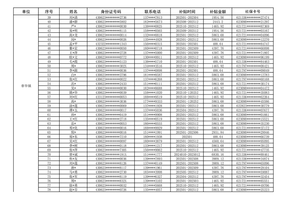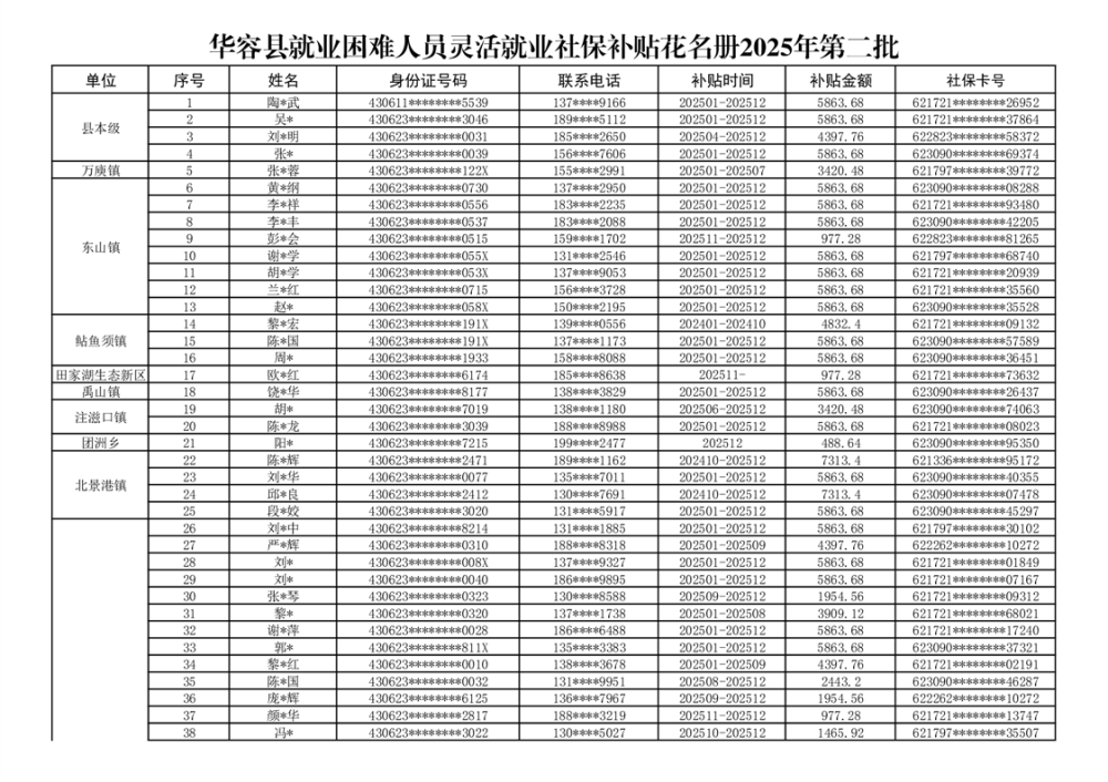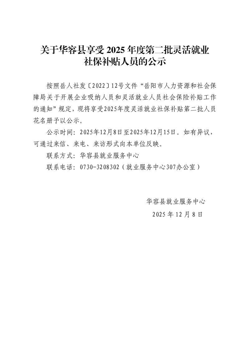 关于华容县享受2025年度第二批灵活就业社保补贴人员的公示