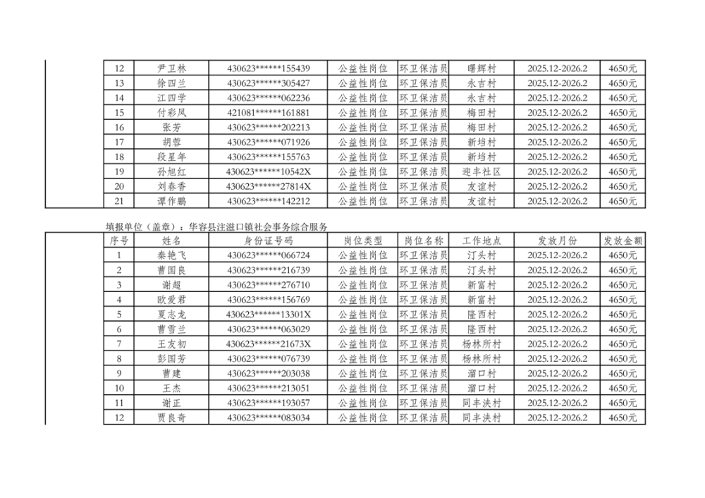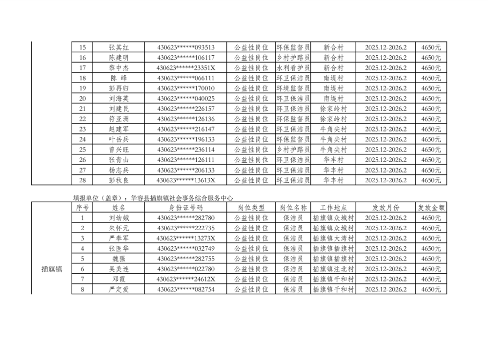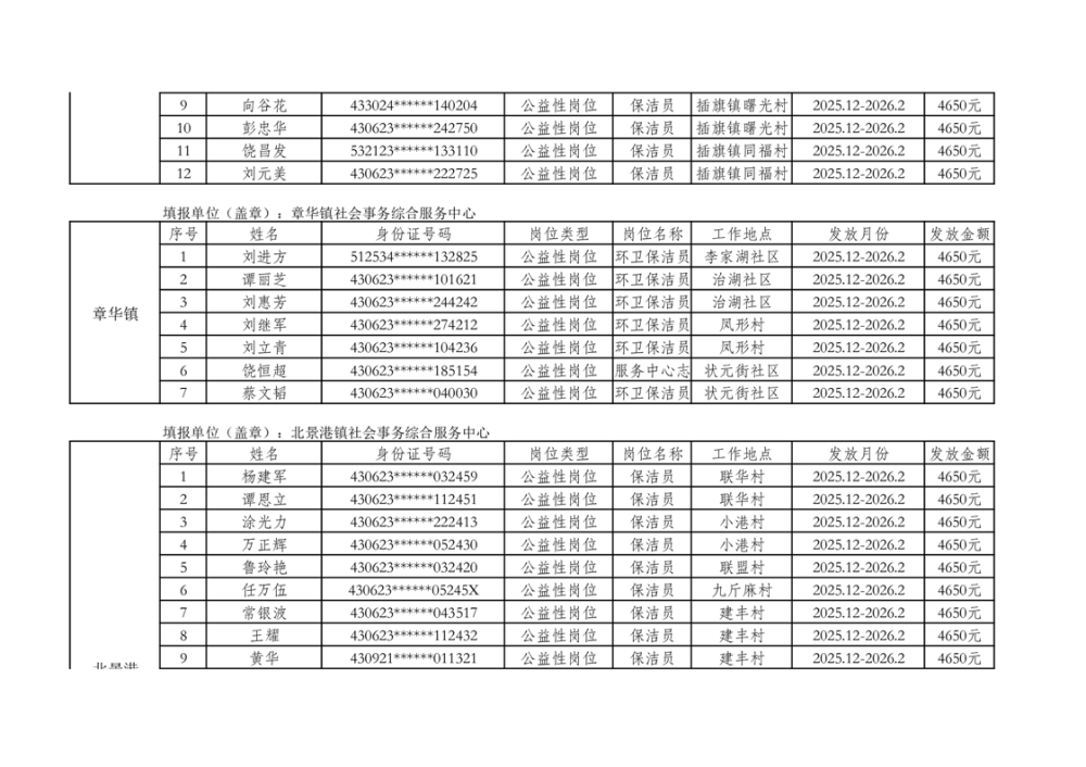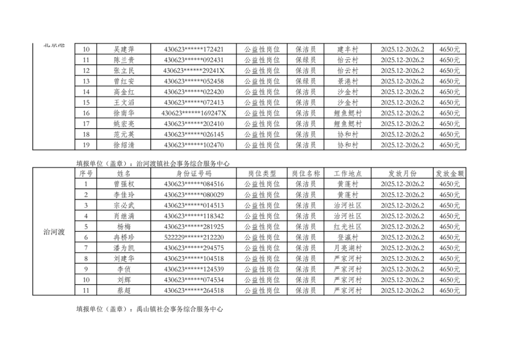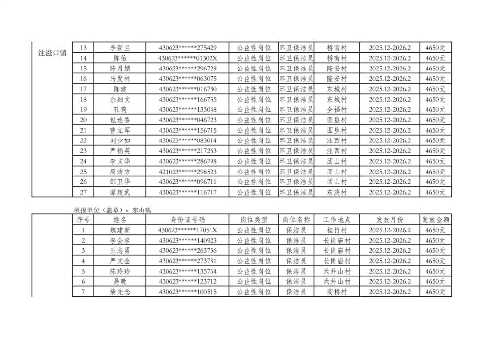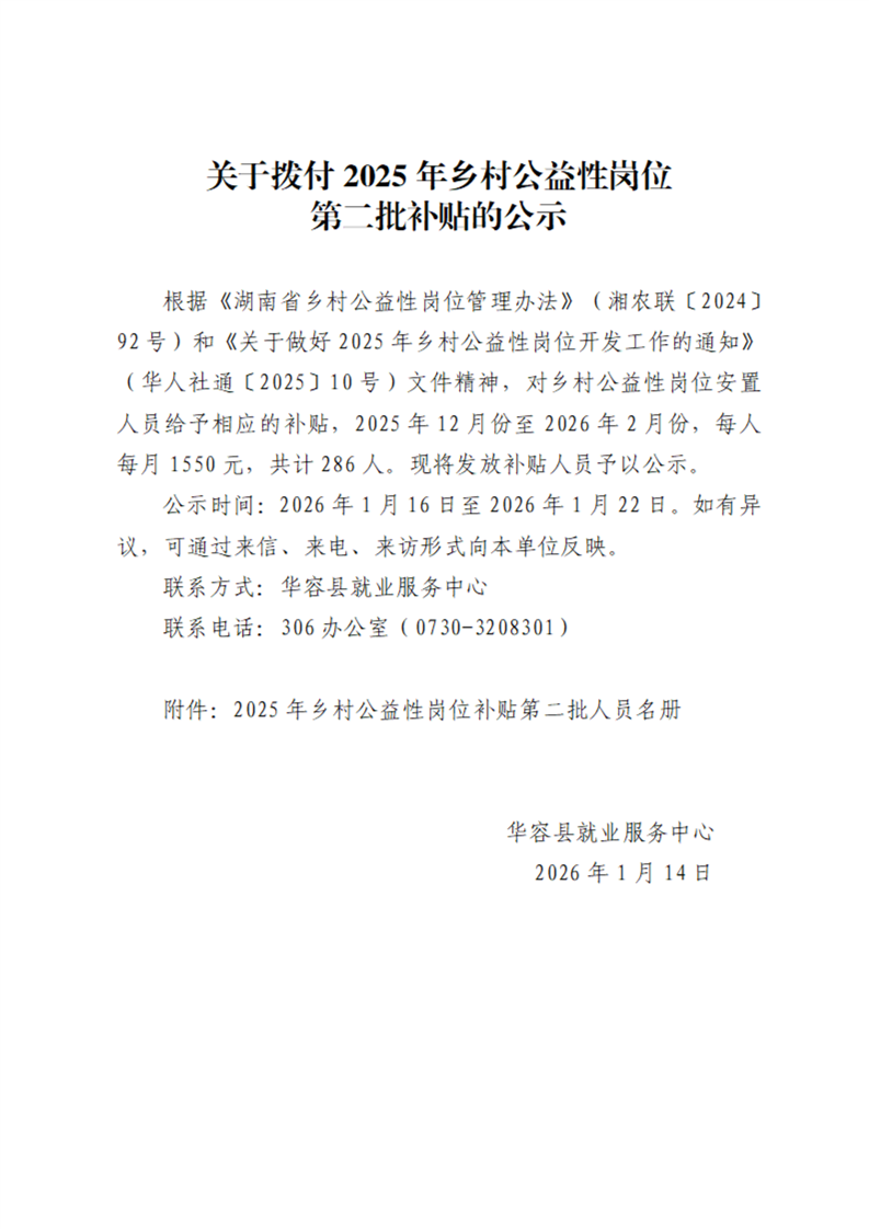 关于拨付2025年乡村公益性岗位第二批补贴的公示