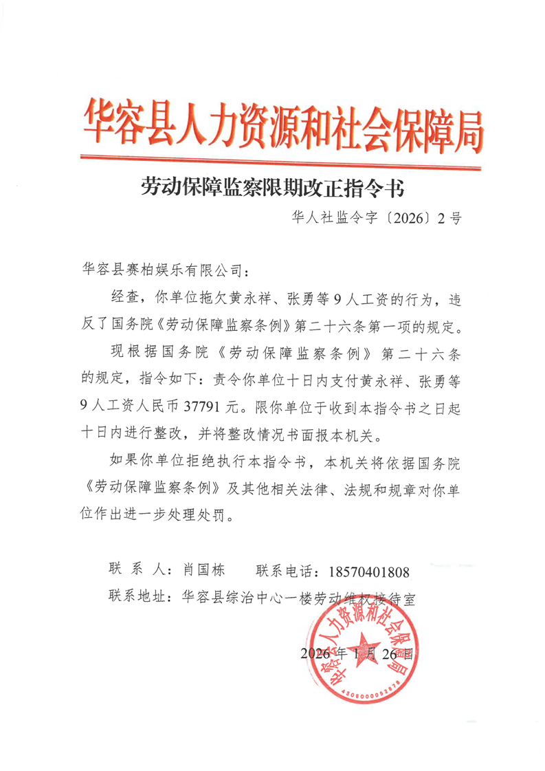 劳动保障监察限期改正指令书