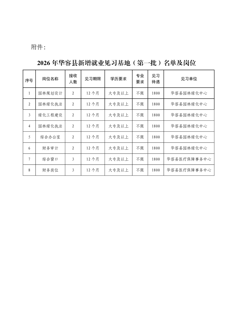 2026年华容县新增就业见习基地(第一批)公示