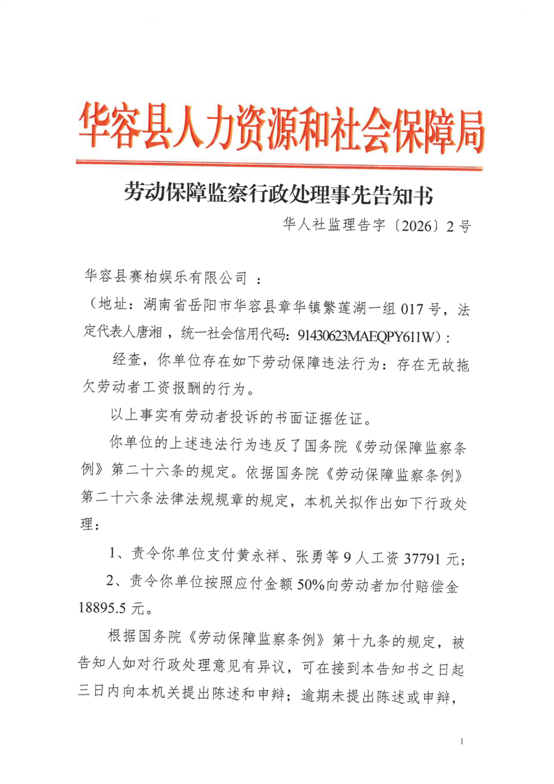 劳动保障监察行政处理事先告知书